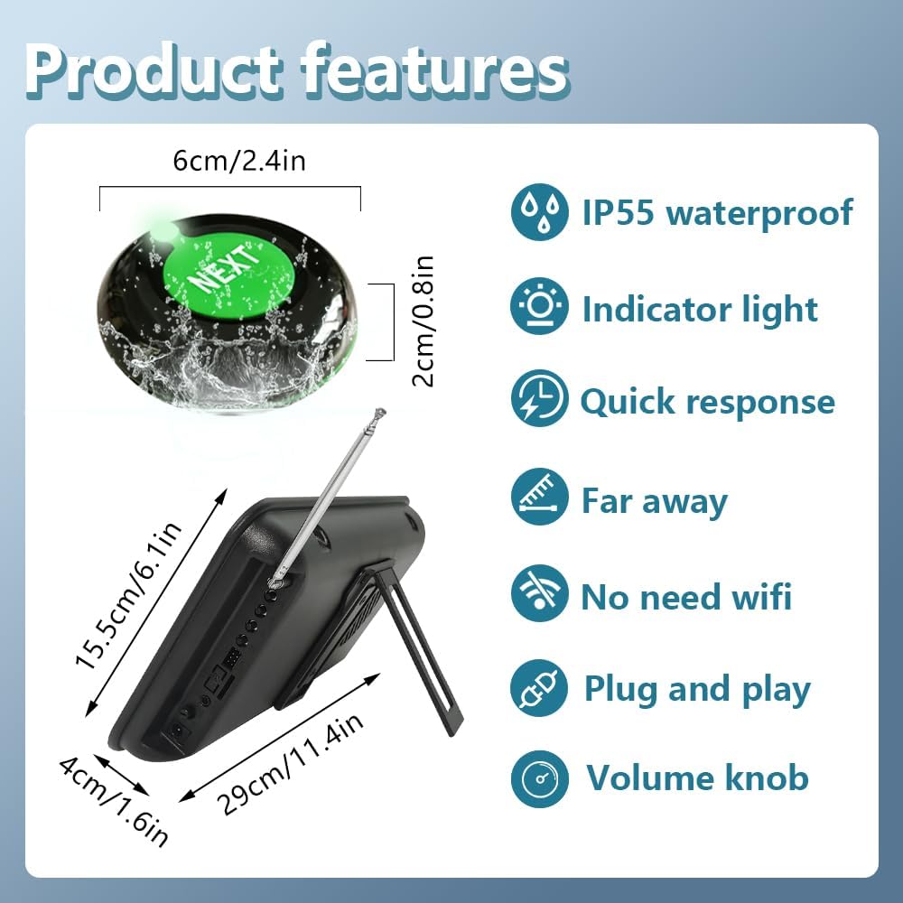 - Take a Number Display: The display receiver can be mounted on a wall or desktop. And The display is adjustable for voice mode, volume and number of prompts. You can choose a simple ding-dong sound or English to remind.