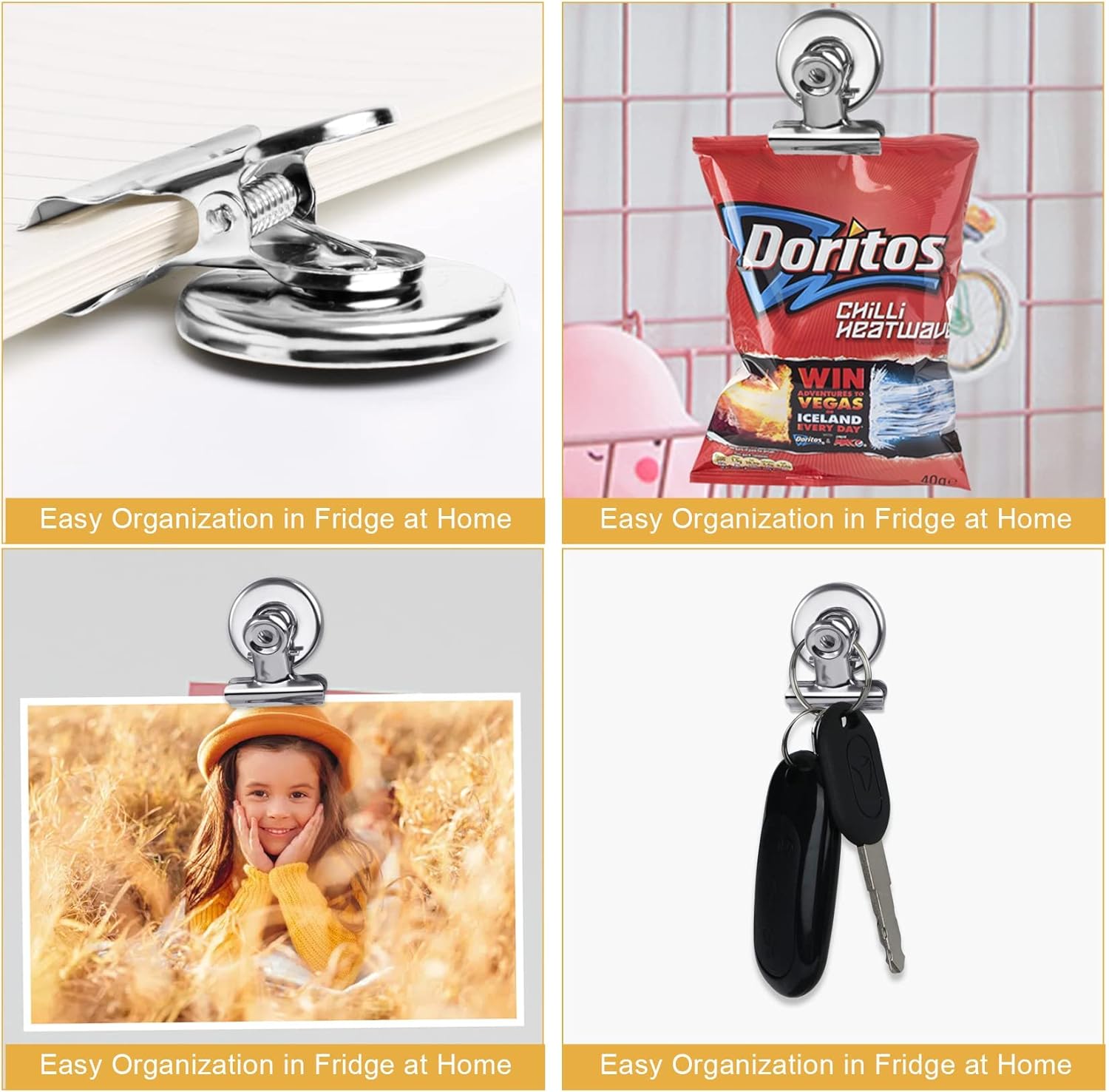 - Strong & Versatile Hold: These magnetic clips for refrigerator securely hold heavy card stock, photos, and artwork. Ideal as fridge magnets, magnet clips, or whiteboard magnets.