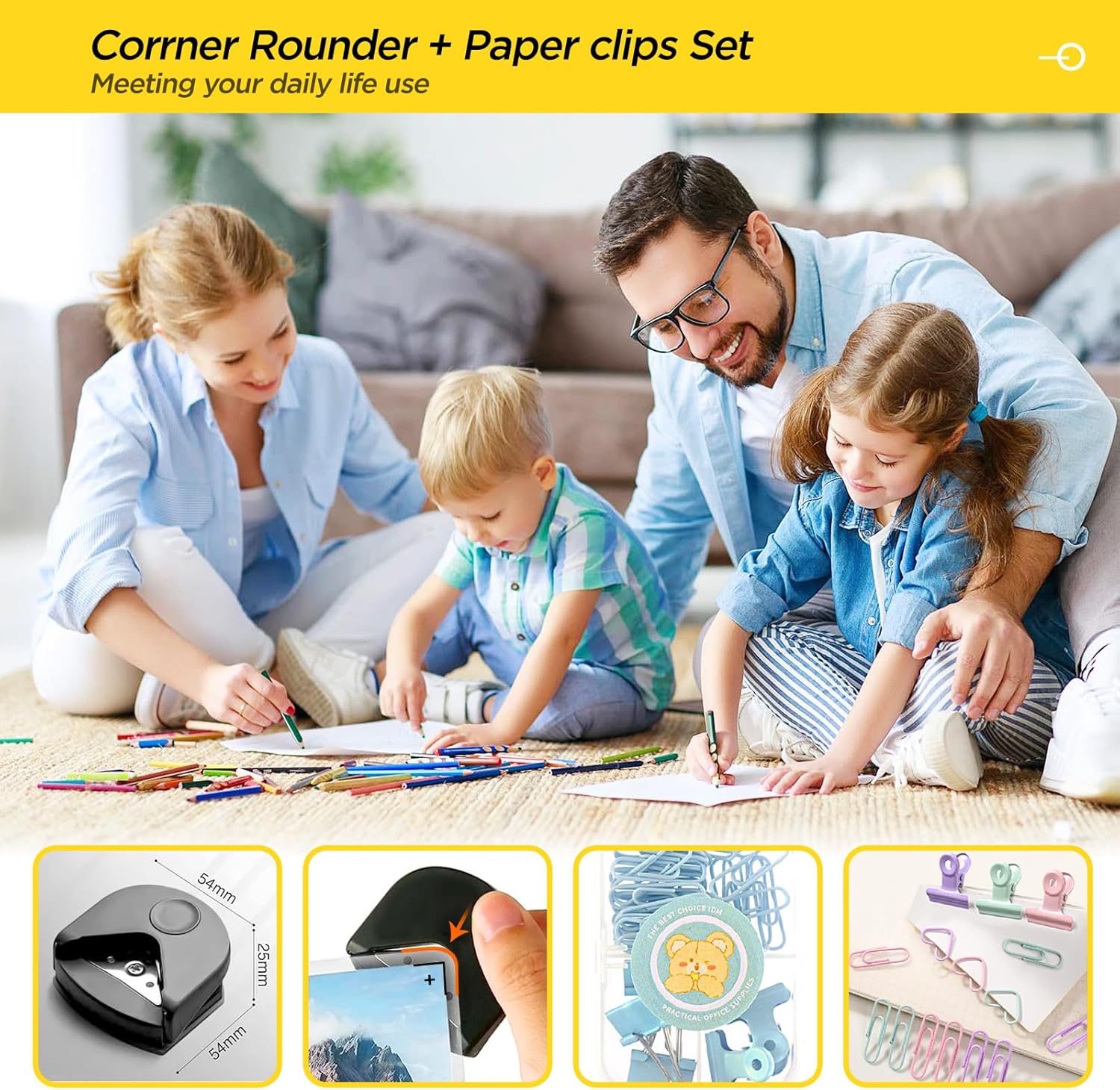 - Sturdy MDF Wood Paper Guillotine with Corner Rounder and Paper Clips: Equipped with aprecise quillotine blade and an aliqnment grid, this trimmer simplifies common cutting tasks. Its solid wood base ensures stability, making it perfect for both home and office use.