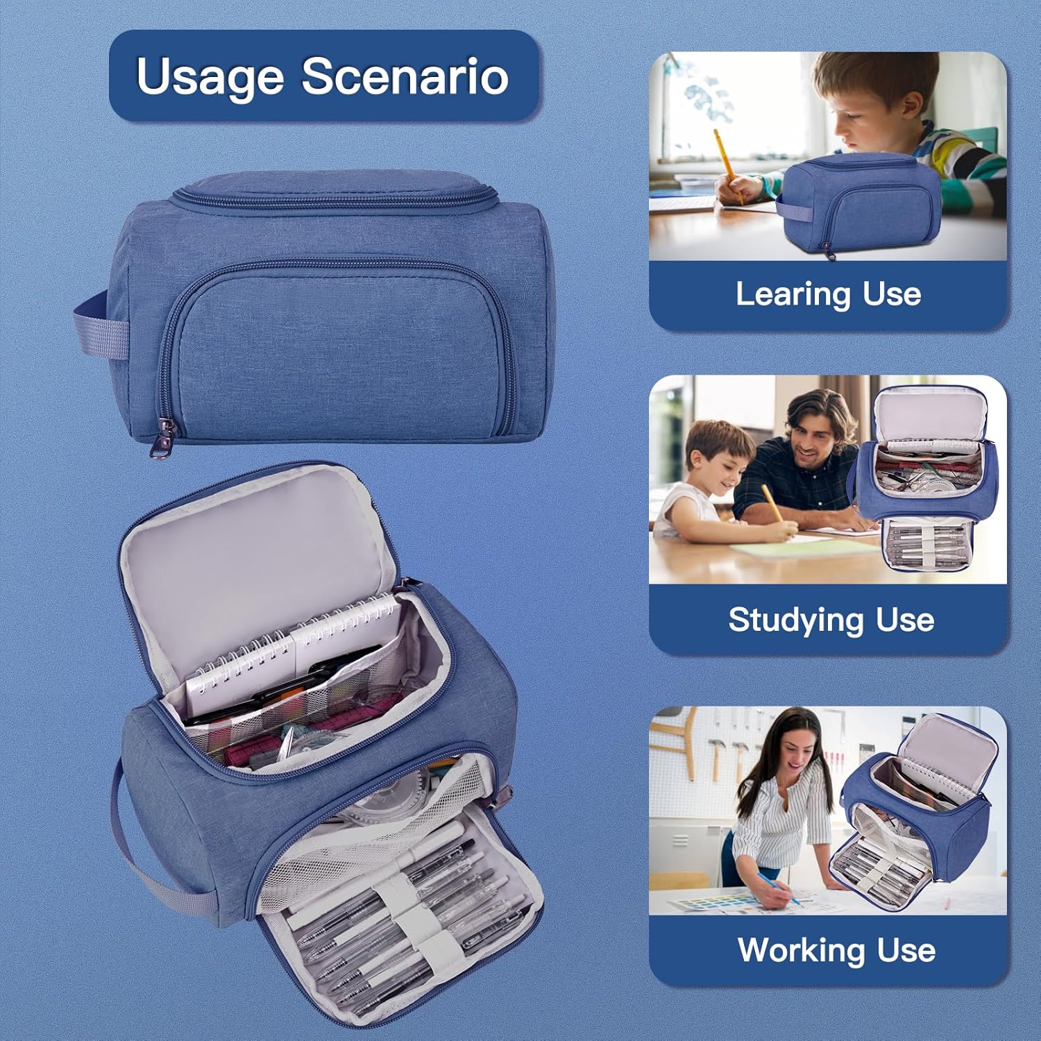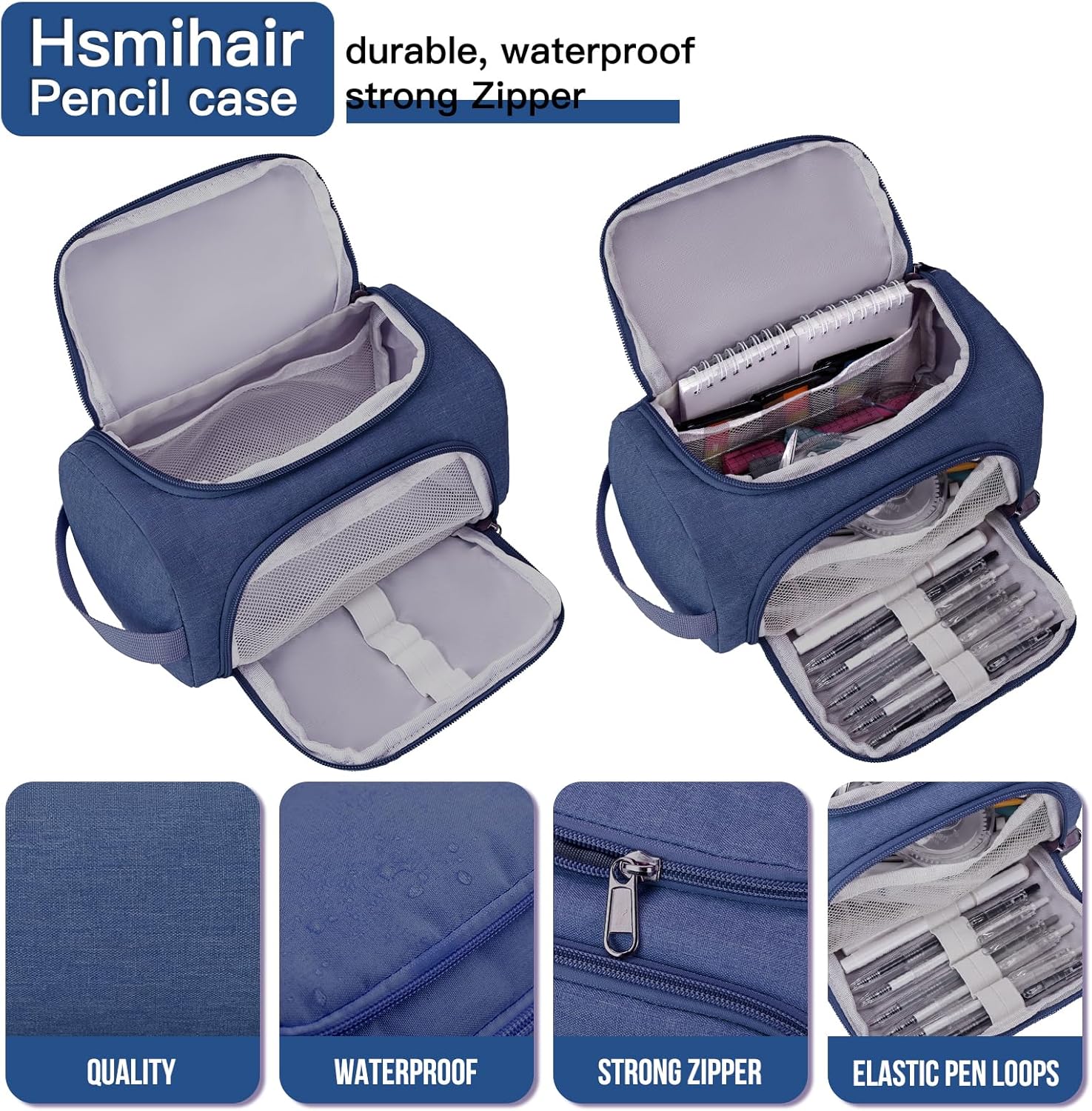Large Pencil Pouch,Pencil Case Aesthetic,Zipper Pencil Box For Girls Back To School Supplies Emergency Bag Makeup Bag (DeepBlue)