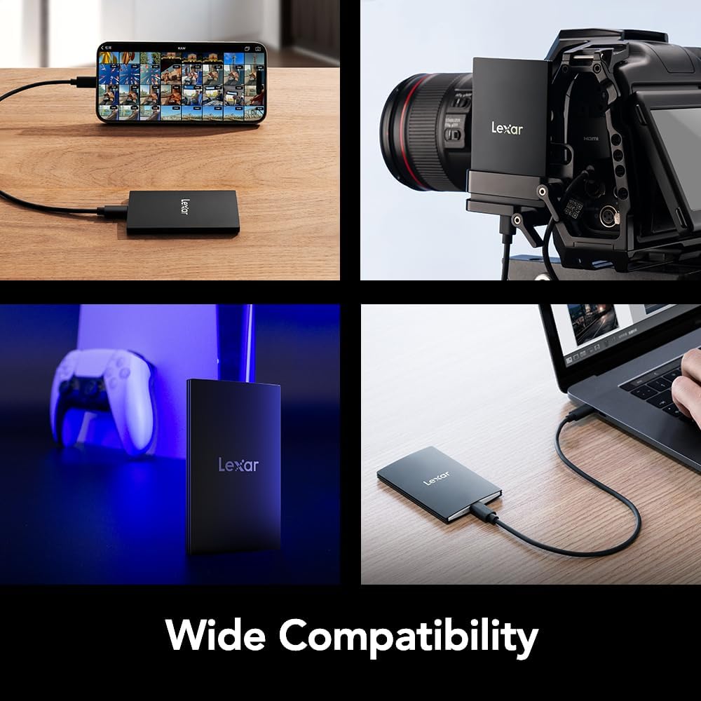 Lexar 4TB SL500 Portable SSD, Up to 2000MB/s, Compatible w/Type-C Laptops, iPhone 15/16, Smartphones, Tablets, PS5, Xbox, USB 3.2 Gen 2x2, Slim & Lightweight, External SSD, Black (LSL500X004T-RNBNU)