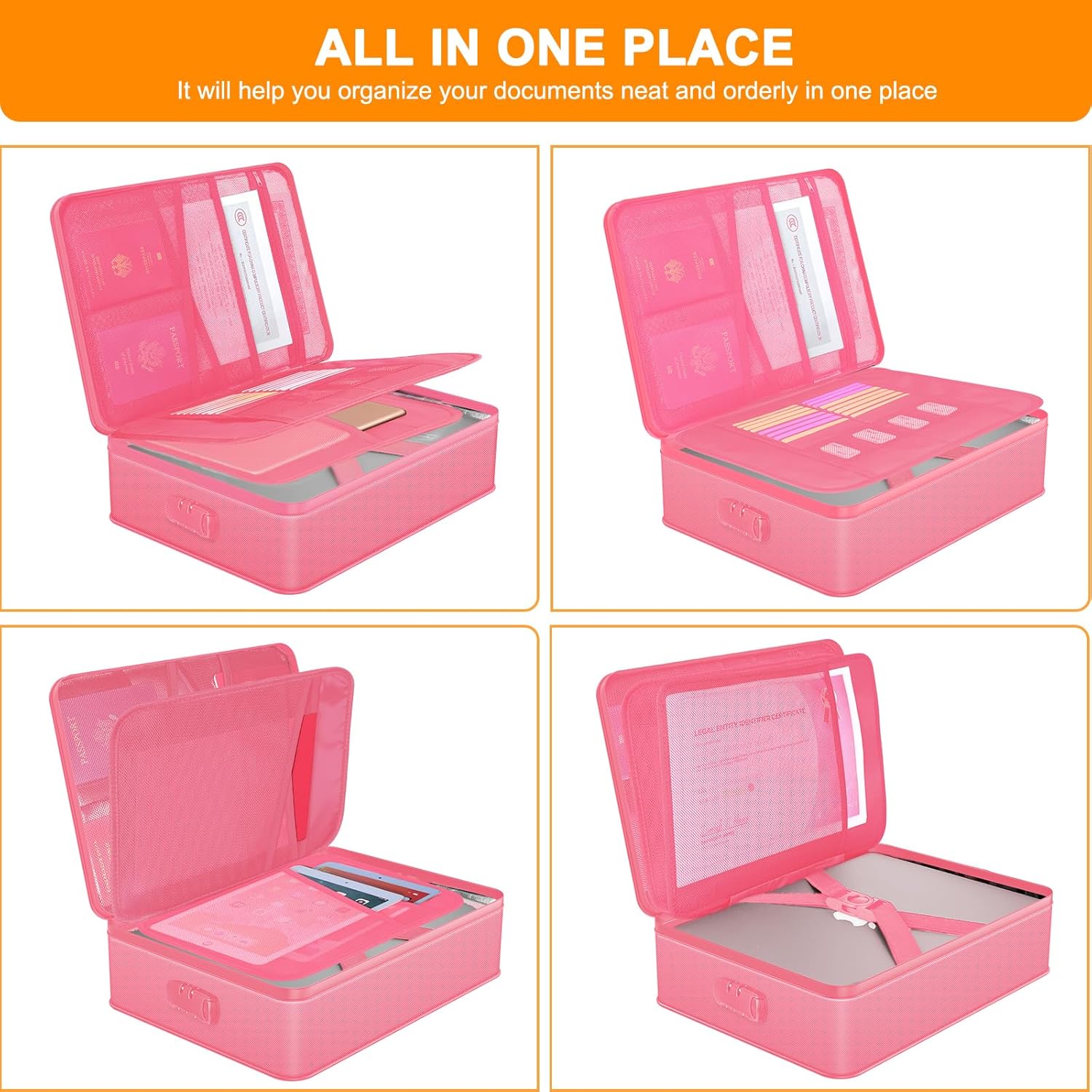 - 5200℉ TOP FIRE PROTECTION::important document organizer is made of silicone fiberglass ,Insulated cotton and Aluminum Foil which withstands high temperature up to 5200℉ .Important document storage adopts a 8-layer function material structure of fire protection and heat insulated to help the heat blocking from your valuables . It will give enough time to save your valuables from fire .Fire box safe for documents is highly recommended by firefighters in the most demanding environments