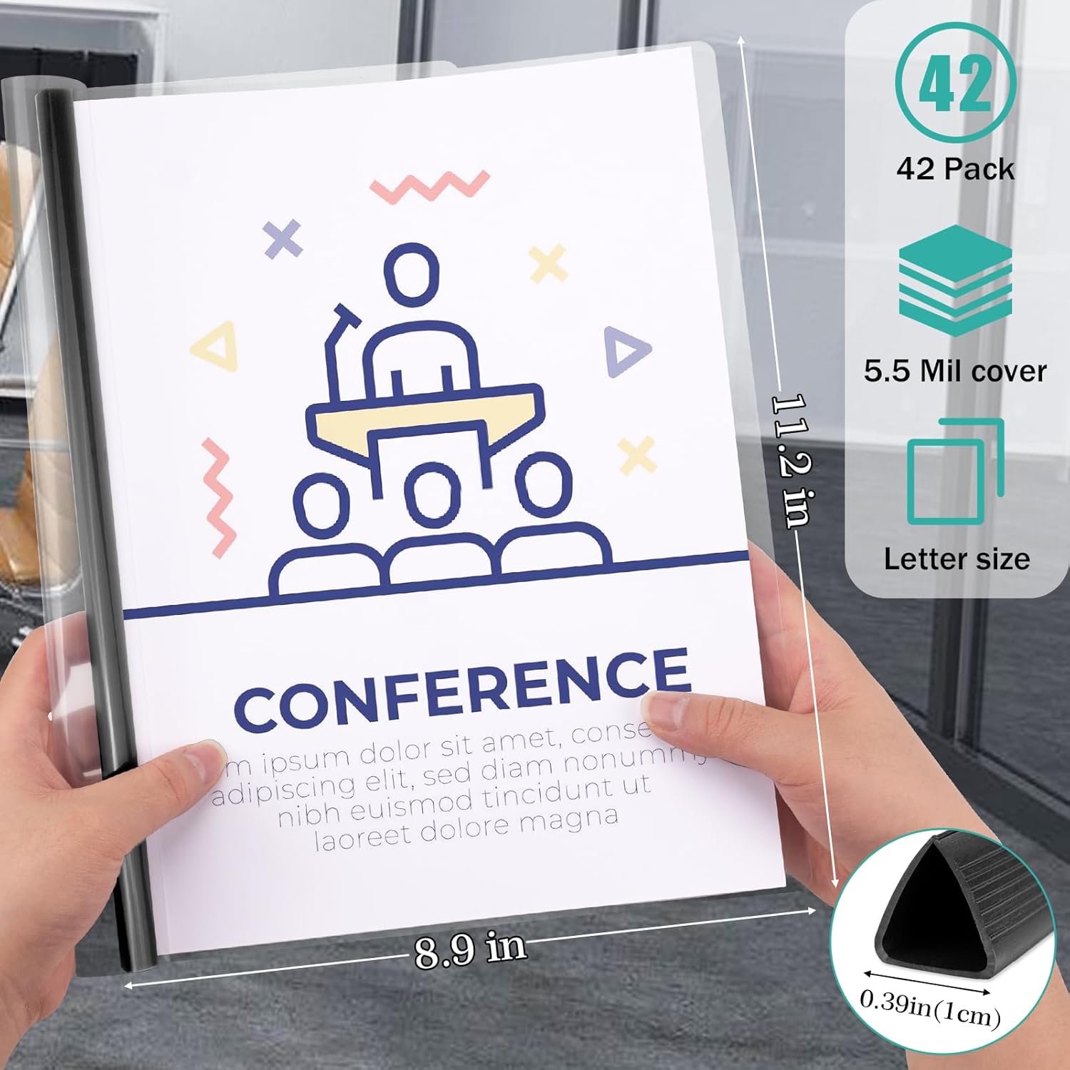 Dynta Report Covers 42 Pack Presentation Folders for Letter Size 70 Sheet Capacity, 5.5 Mil Report Covers with Sliding bar Black, Resume Folder Clear Folder for File Resume Documents