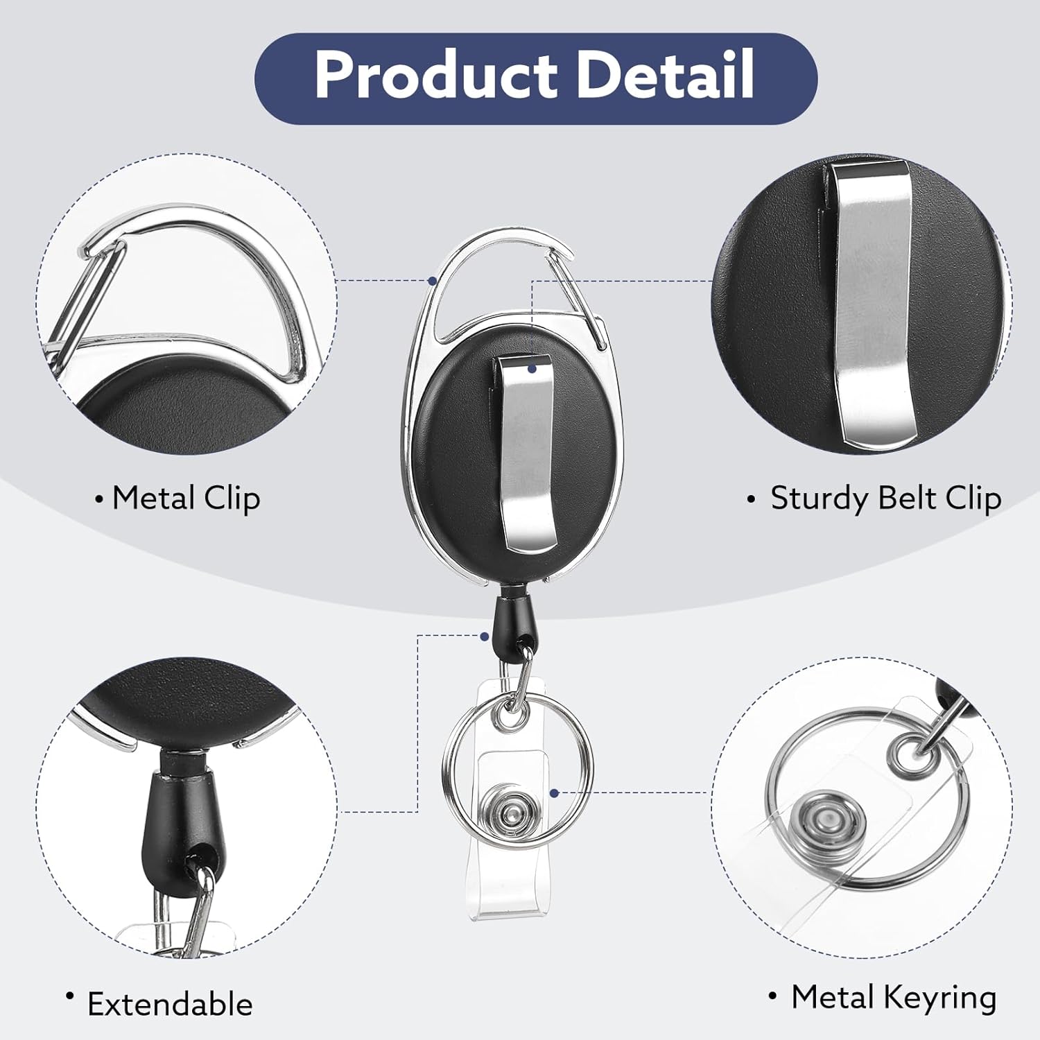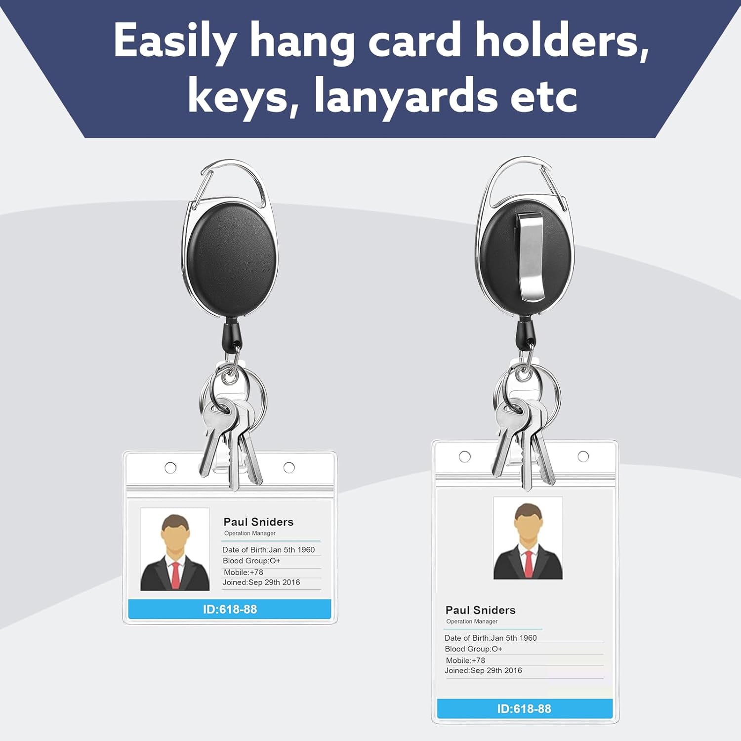 - 【Easy To Use】Our heavy duty retractable badge holders are designed with an easy -to -open carabiner, which can be easily worn on the belt, pocket, and a metal key ring to hang multiple keys.