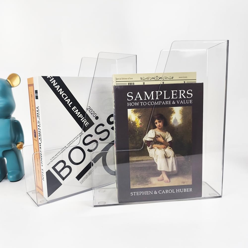 - Versatile Storage: Clear plastic vertical file holder and magazine organizer for home or office use, perfect for storing binders, notebooks, envelopes, and documents.