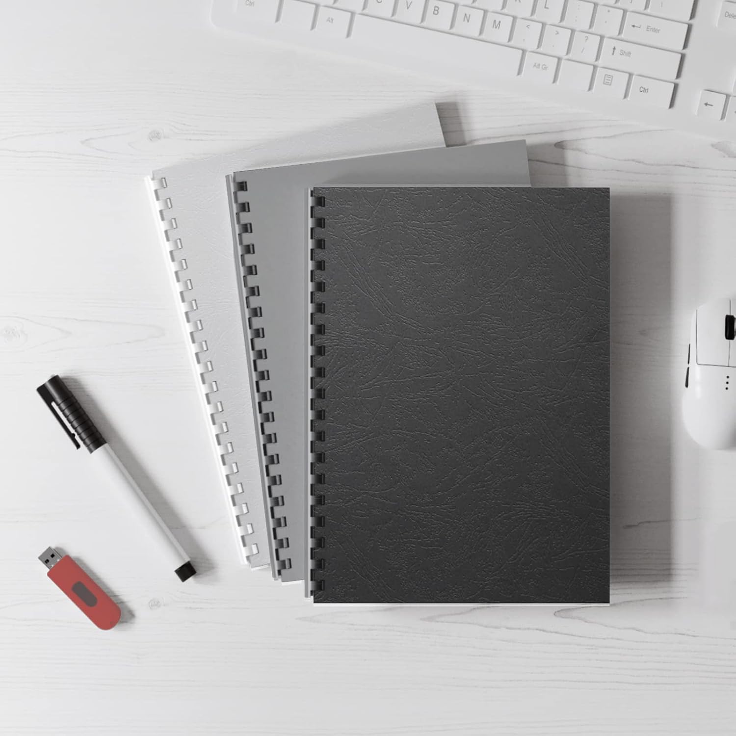 - Grain Texture Finish: Designed with a textured grain pattern, these paper binding covers offer a professional appearance reminiscent of leather, while being completely paper-based.