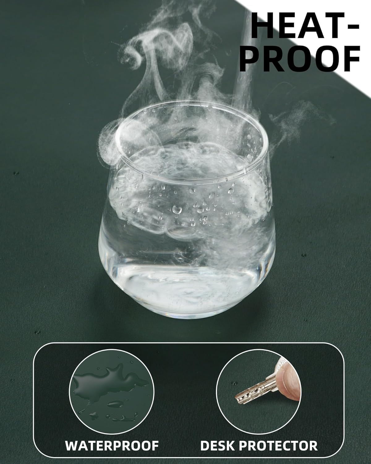Leather Desk Pad Protector, Large Mouse Pad and Non-Slip Mat, Waterproof PU Leather Blotter Mat for Office and Home (Dark Green, 36" x 17")