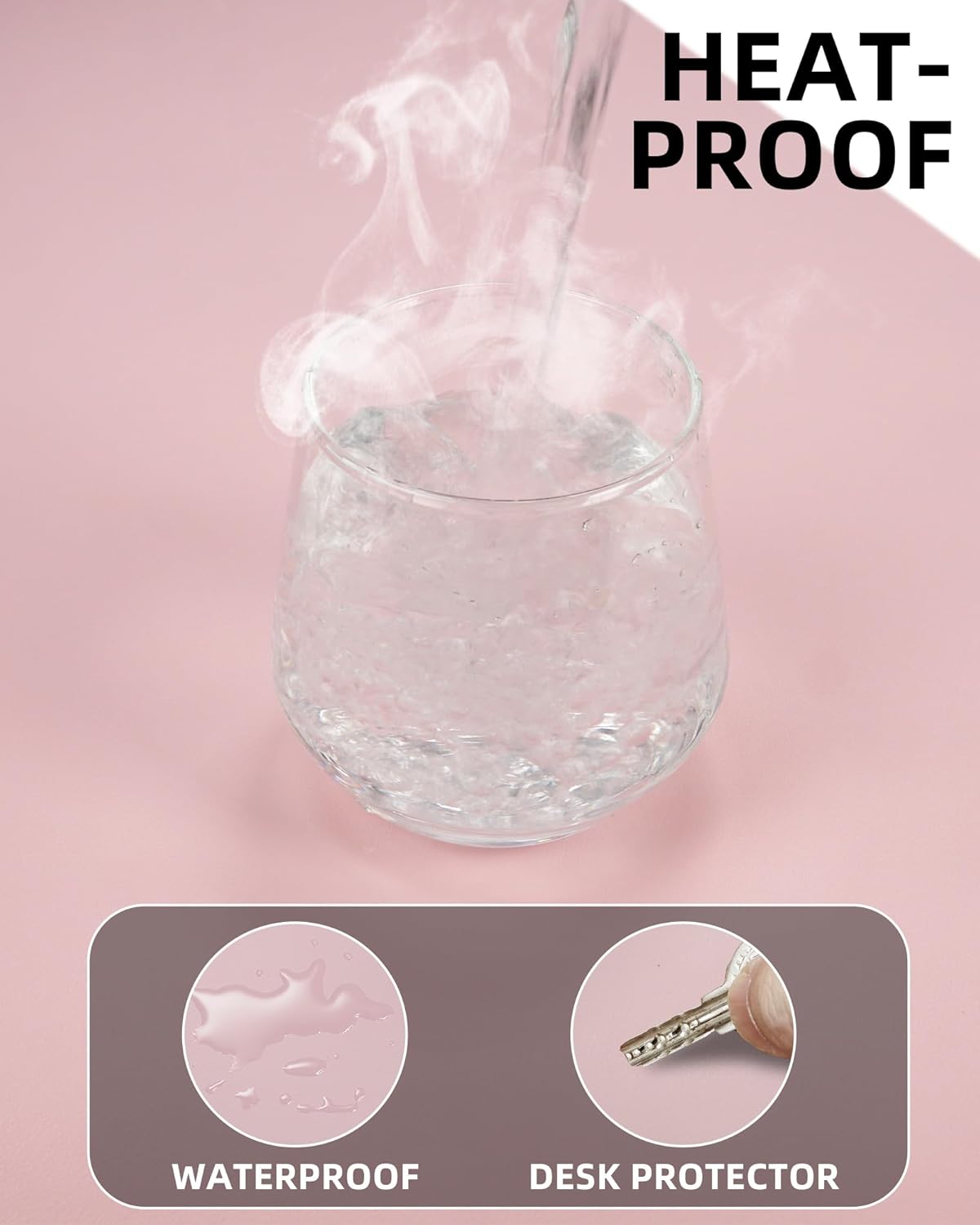PU Leather Desk Mat Protector - 55"x17" Large Non-Slip Office Desk Pad, Waterproof Keyboard & Mouse Pad, Premium Workstation Cover for Home & Office (Light Pink)