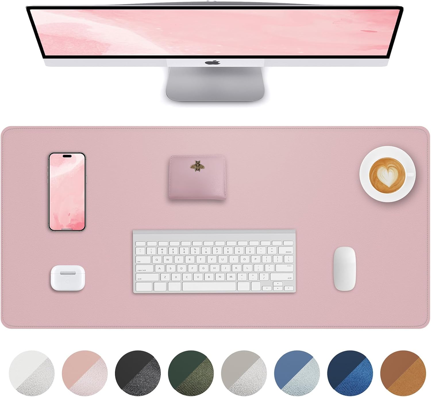 Non-Slip Desk Pad,Mouse Pad,Waterproof PVC Leather Desk Table Protector,Non-Slip PU Leather Desk Blotter, Easy Clean Laptop Desk Writing Mat for Office Work/Home/Decor(Light Pink, 24" x 13.7")