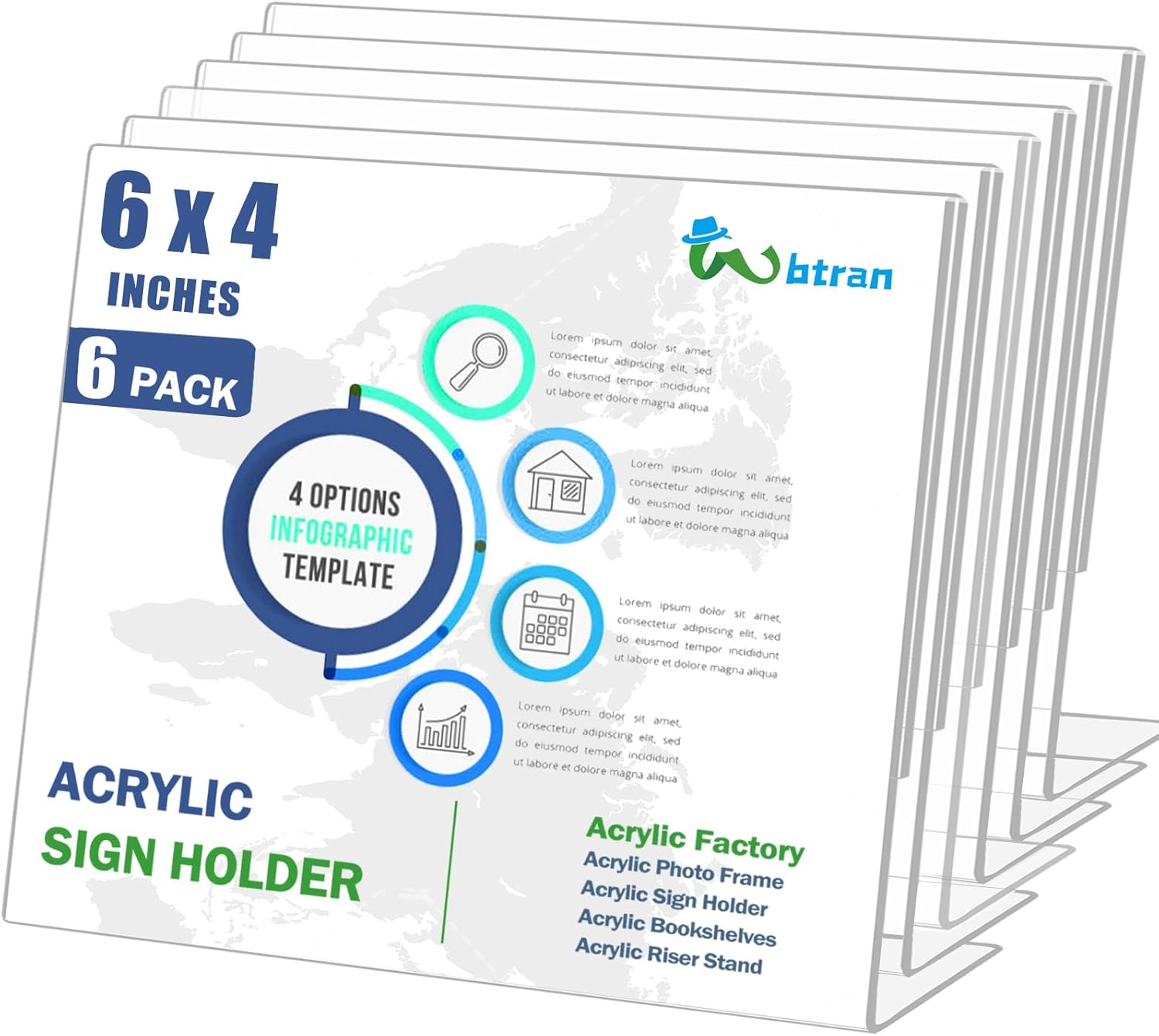 - 【Acrylic Sign Holder 6 x 4】: Our acrylic sign holder is a standard size of 6 x 4 inch, suitable for all pictures, text and logos printed.