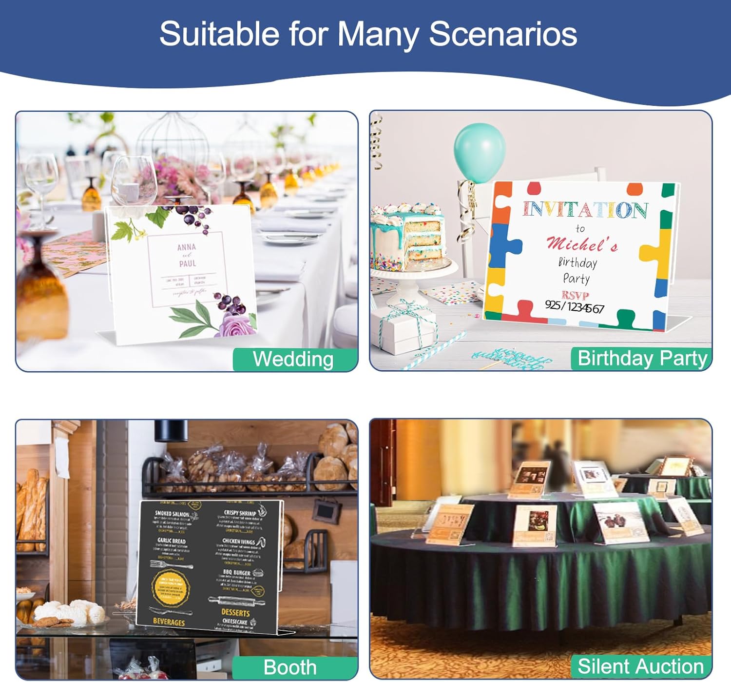 - 【Acrylic Sign Holder 8 x 10 Horizontal】: Our acrylic sign holder is a standard size of 10 x 8 inch, suitable for all pictures, text and logos printed.