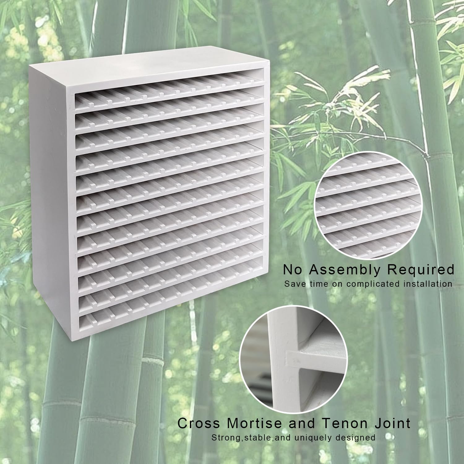 MinBoo Bamboo Art Supply Storage Rack - Wooden Marker Organizer for 144 Markers, Pens, Colored Pencils, Paint Brushes (White)