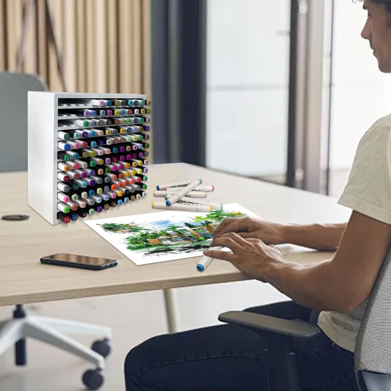 - LARGE STORAGE CAPACITY - Our marking organizer offers multiple sizes, and each marker holder has an individual compartment of 0.7x0.7 inch, providing ample room to store up to alcohol markers horizontally. Keep your markers protected, easily accessible, and extend their lifespan.