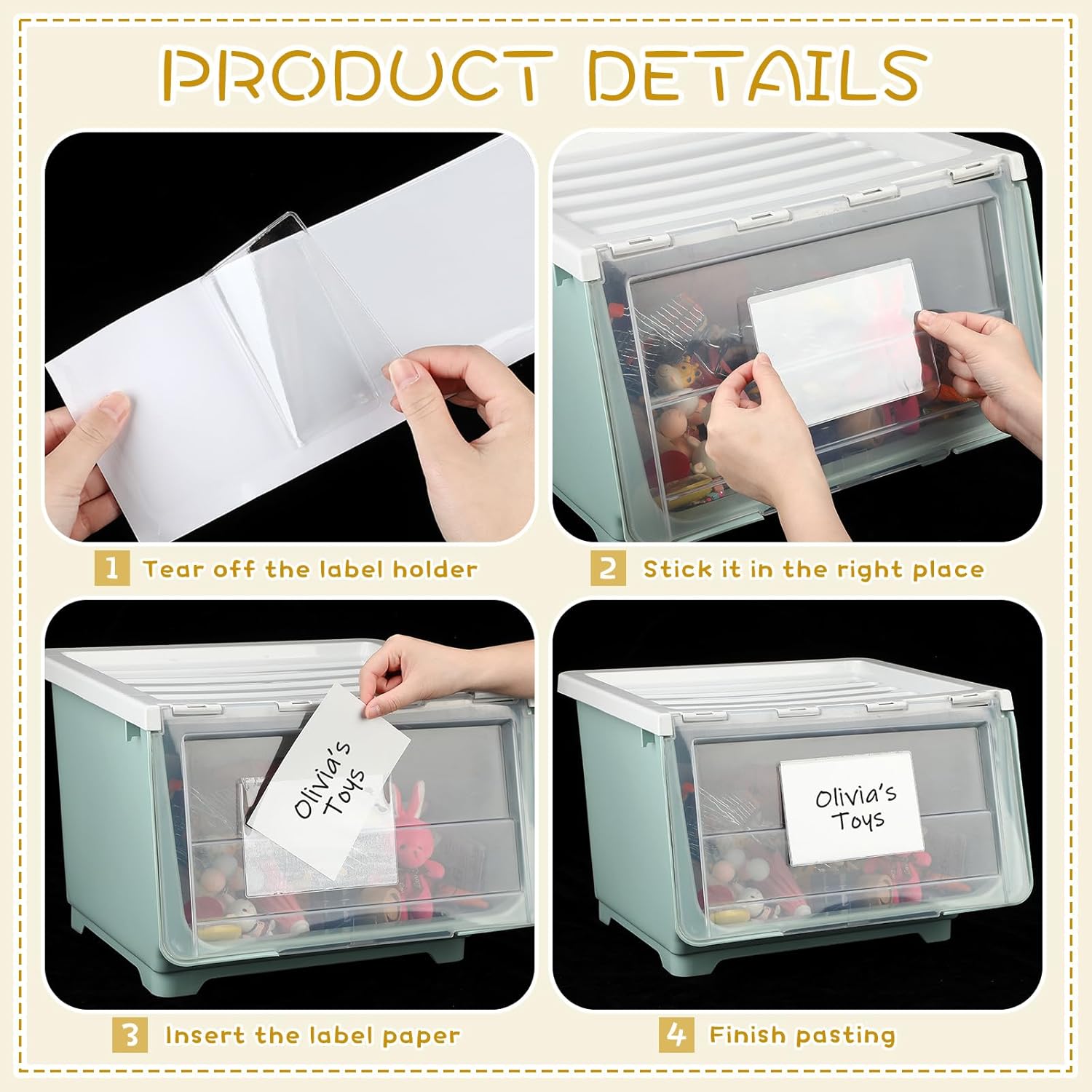- What You Will Receive: you will get 100 pieces of labels for storage bins; Each label holder size is approx. 4.3 x 6.5 inches/ 11 x 16.5 cm; Adequate quantity and the right size to meet your daily use and replacement needs