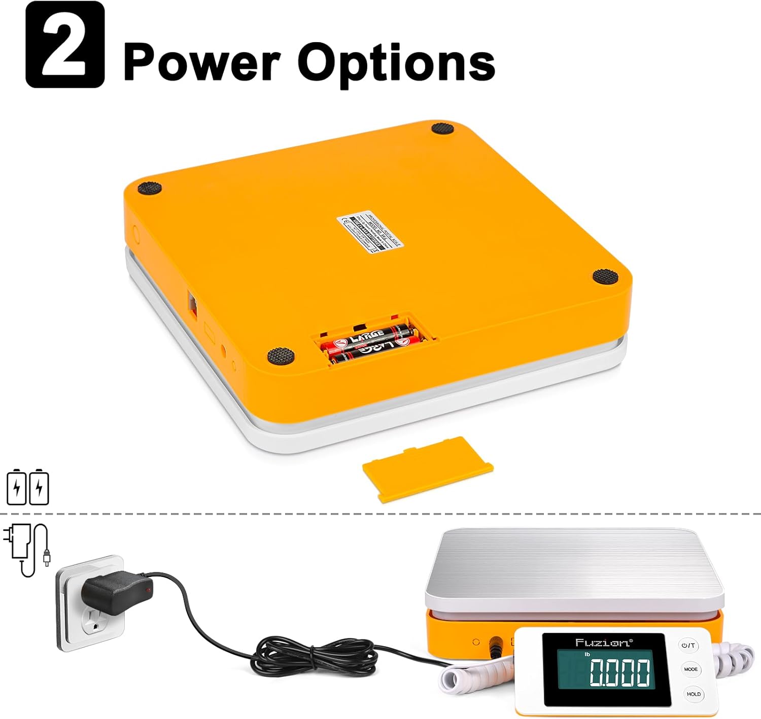 Fuzion Shipping Scale - Digital Postal Scale 110LB x 0.1oz, Large LCD Display, 5 Units, Scale for Packages, Postage - Dual Power Supply (Batteries & Adapter)