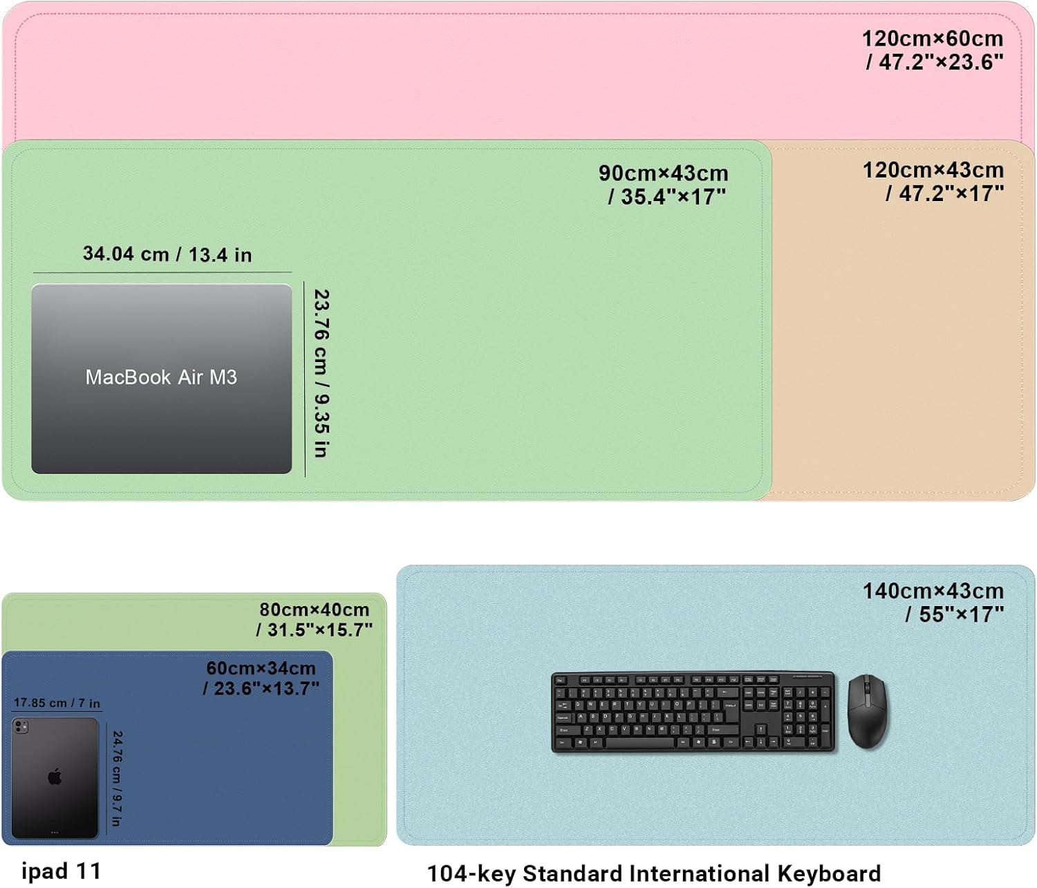 - 🖱️ 🖱️Superior Protection Mat for Desk: Durable PU leather and cork material, provide reliable protection for your desk surface. Safeguard your tabletop from everyday wear and tear with our Dual-Sided Desk Pad. This large mouse pad and desk mat combo is a protective barrier, preventing scratches, scuffs, and spills from damaging your workspace.
