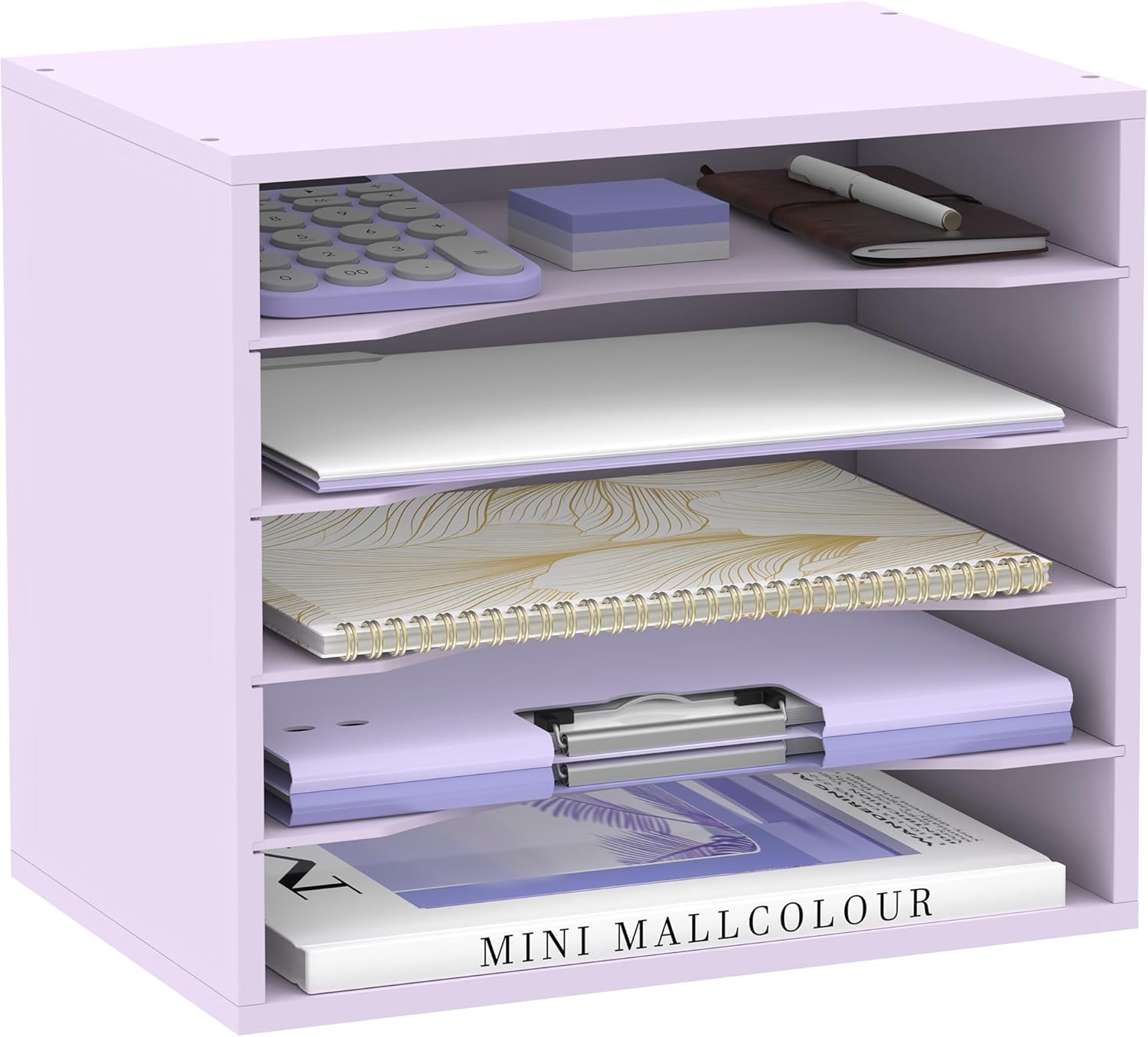 SUPEASY Wood Desk Organizer, 5 Tier Paper File Organizer for Desk, Wooden Desktop Organizer, Paper Letter Literature Mail Sorter, for Office School & Home Organization, Purple
