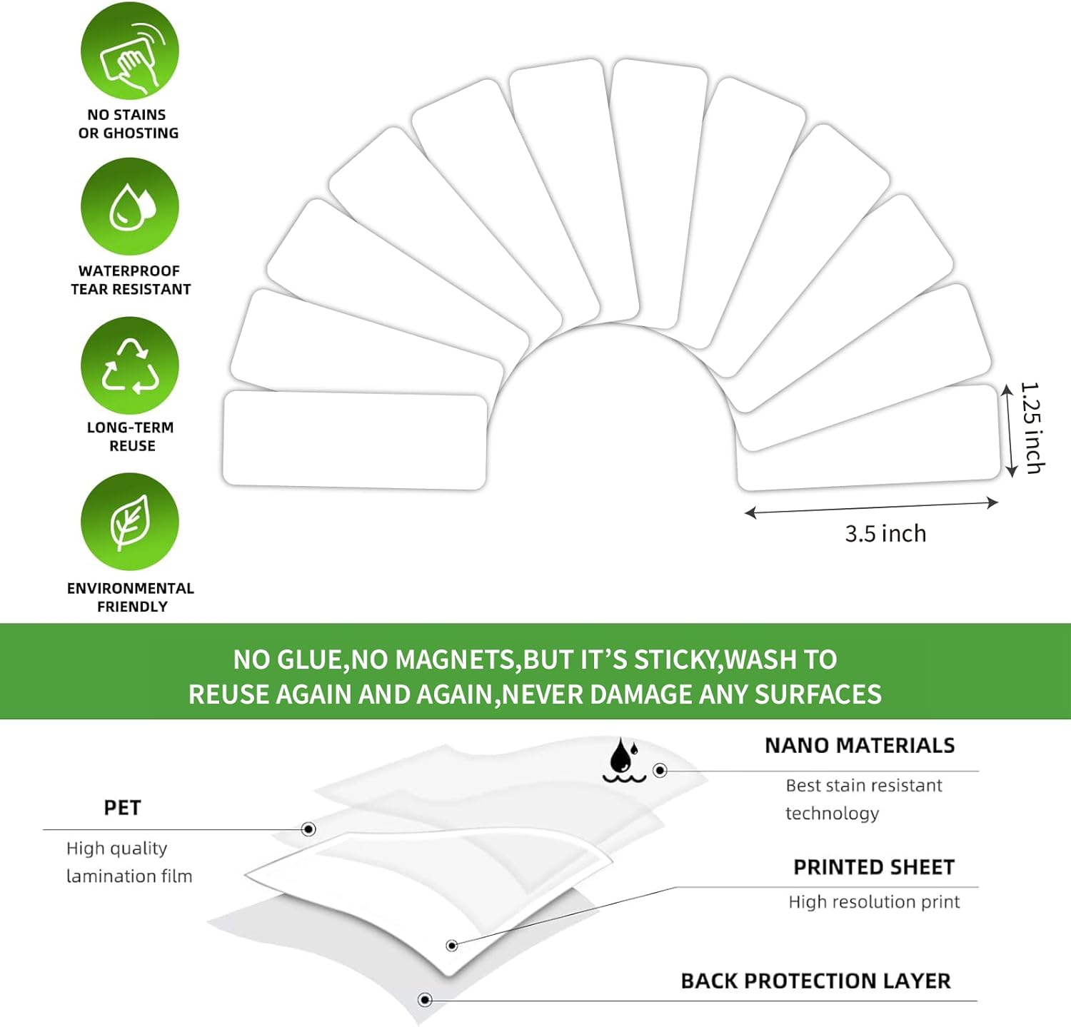 SVNOOC Multi-Use Removable Dry Erase Labels Stickers, White, Reusable Sticky Notes for Kitchen Office School All Purpose Use(1.25 * 3.5 inches White)