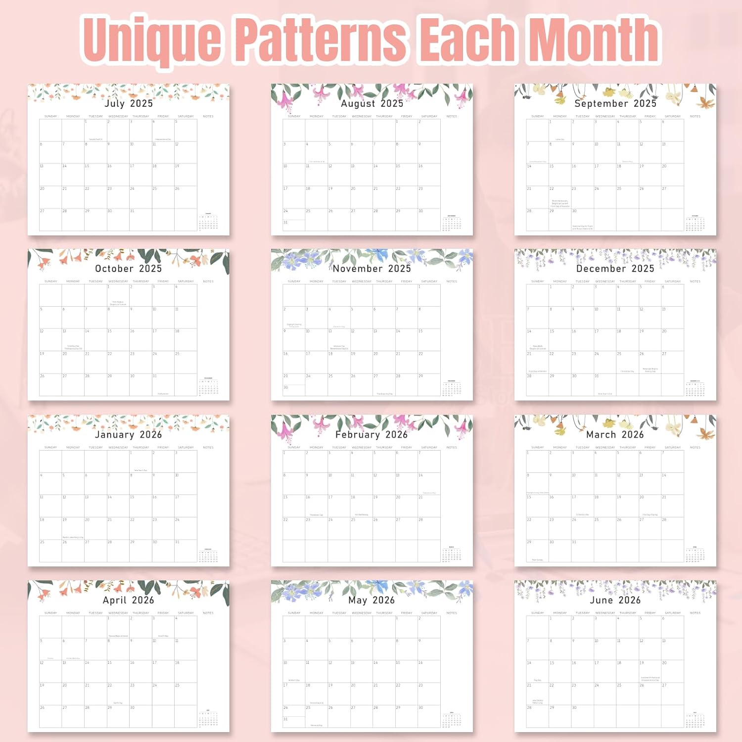 - 🌸【Design with Small Fresh Florals】the office calendar july 2025-2026 doubles as a charming decorative piece with its small fresh floral designs. The 18 different artistic state floral patterns bring a touch of tranquility to your space, making it a delightful addition to your home, school, or office environment.