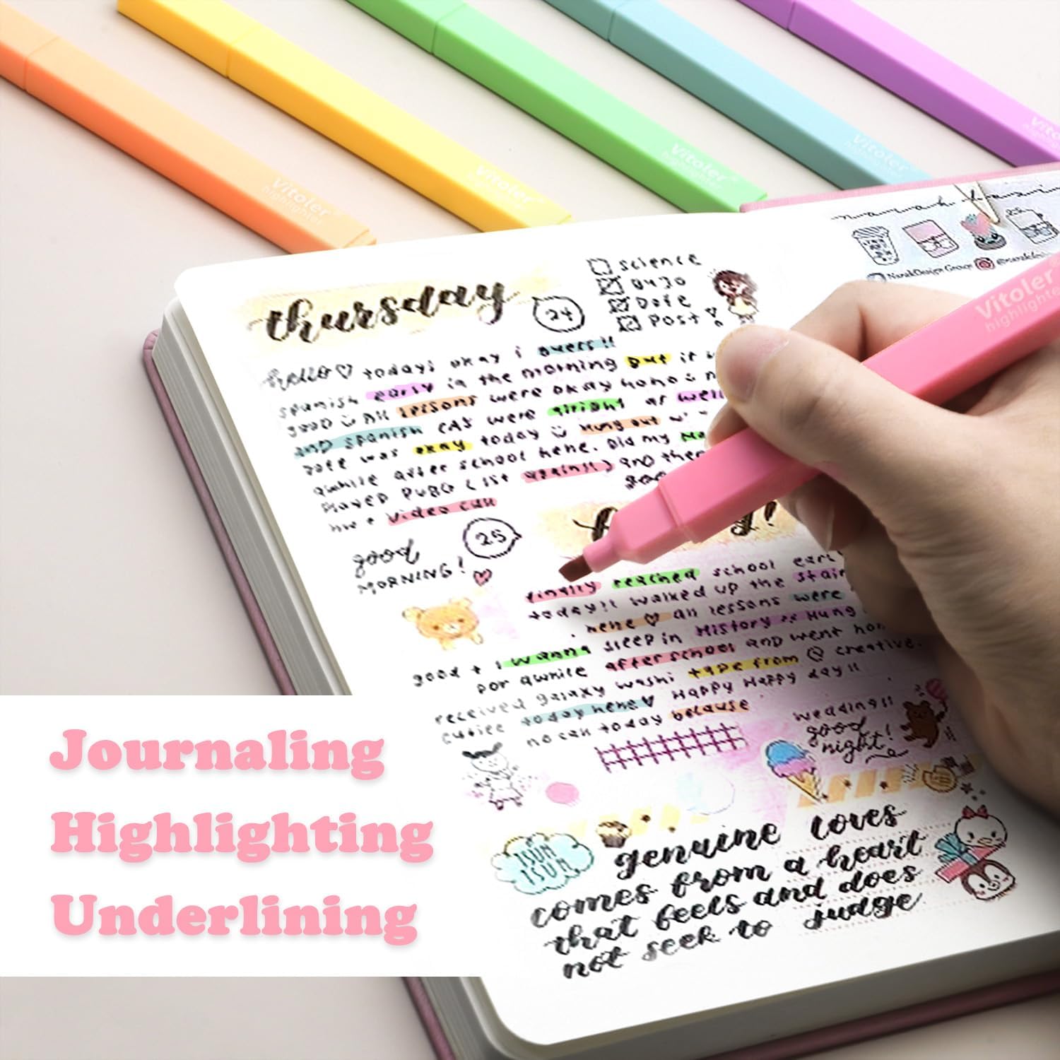 Vitoler Highlighters Assorted Colors,12 Pack Chisel Tip Highlighter Pens,No Bleed Highlighters for School Office Supplies