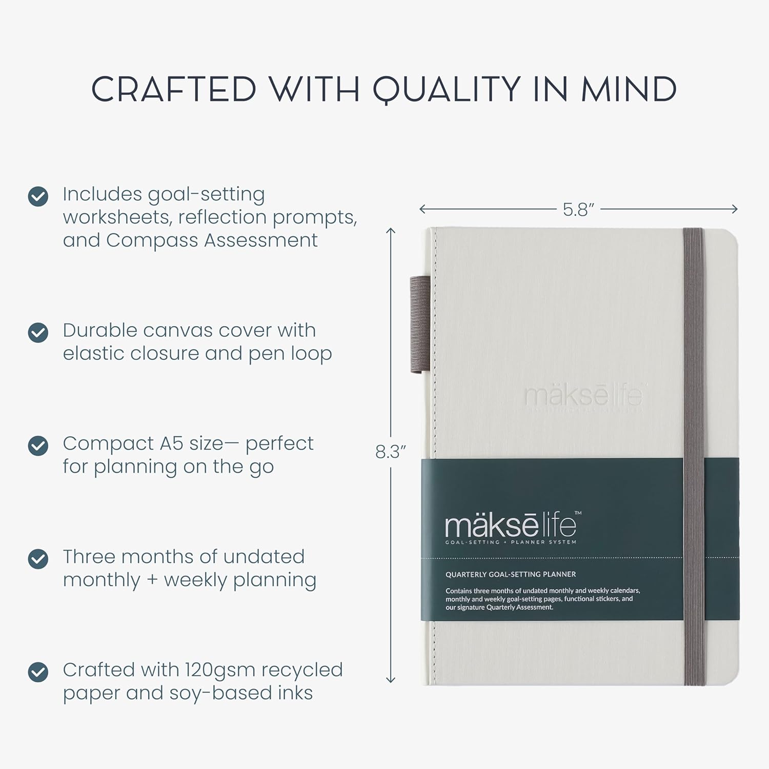 - Comprehensive Goal-Setting journal: The MäksēLife undated weekly planner supports you every step of the way with a system for meaningful goals and gentle weekly nudges to keep you on track