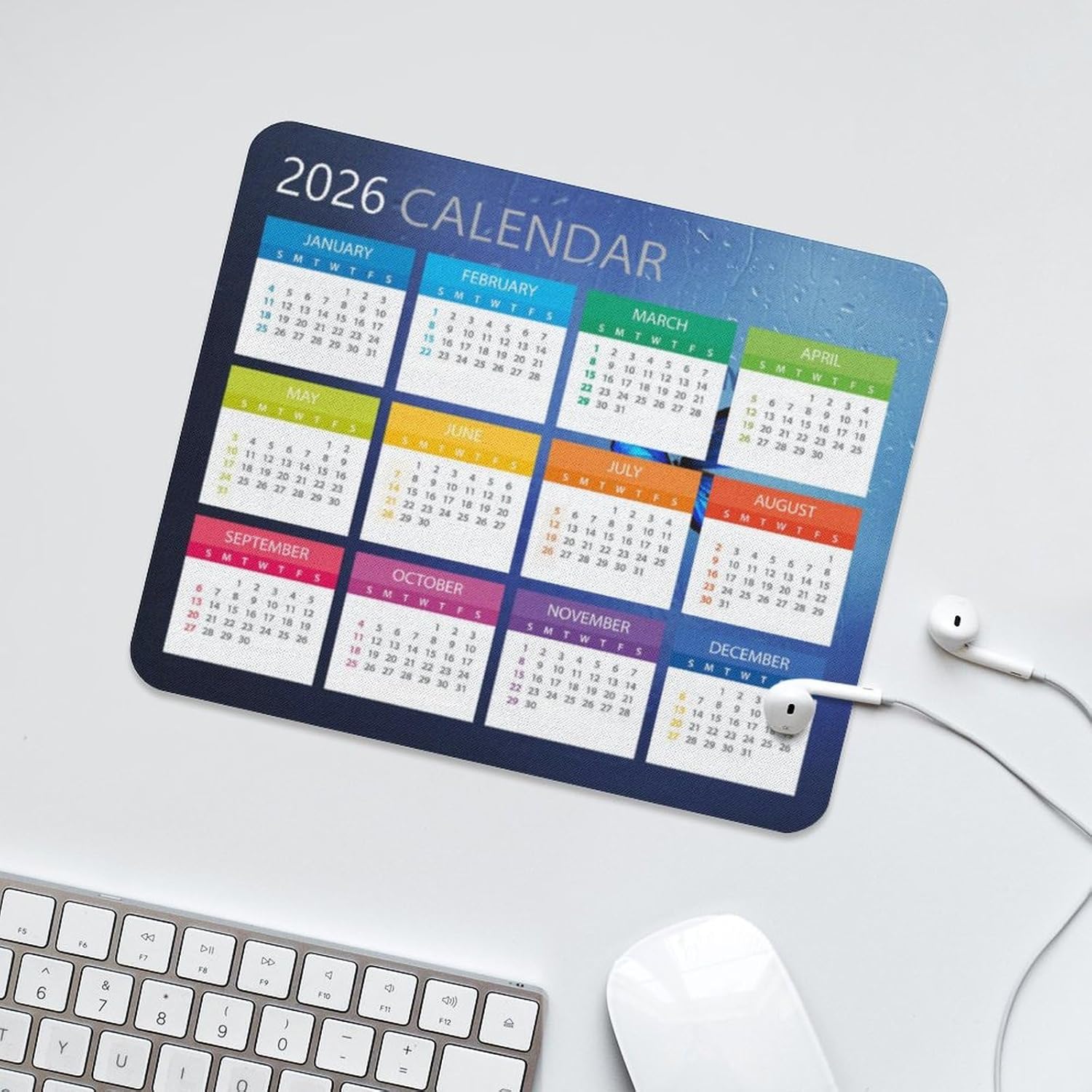 Mouse Pad 2026 Calendar,Computer Mouse Pads Calendars Non-Slip Rubber Desk Mat Mousepad Gaming Office Keyboard Mat (9.45x7.87 in) (Blue)
