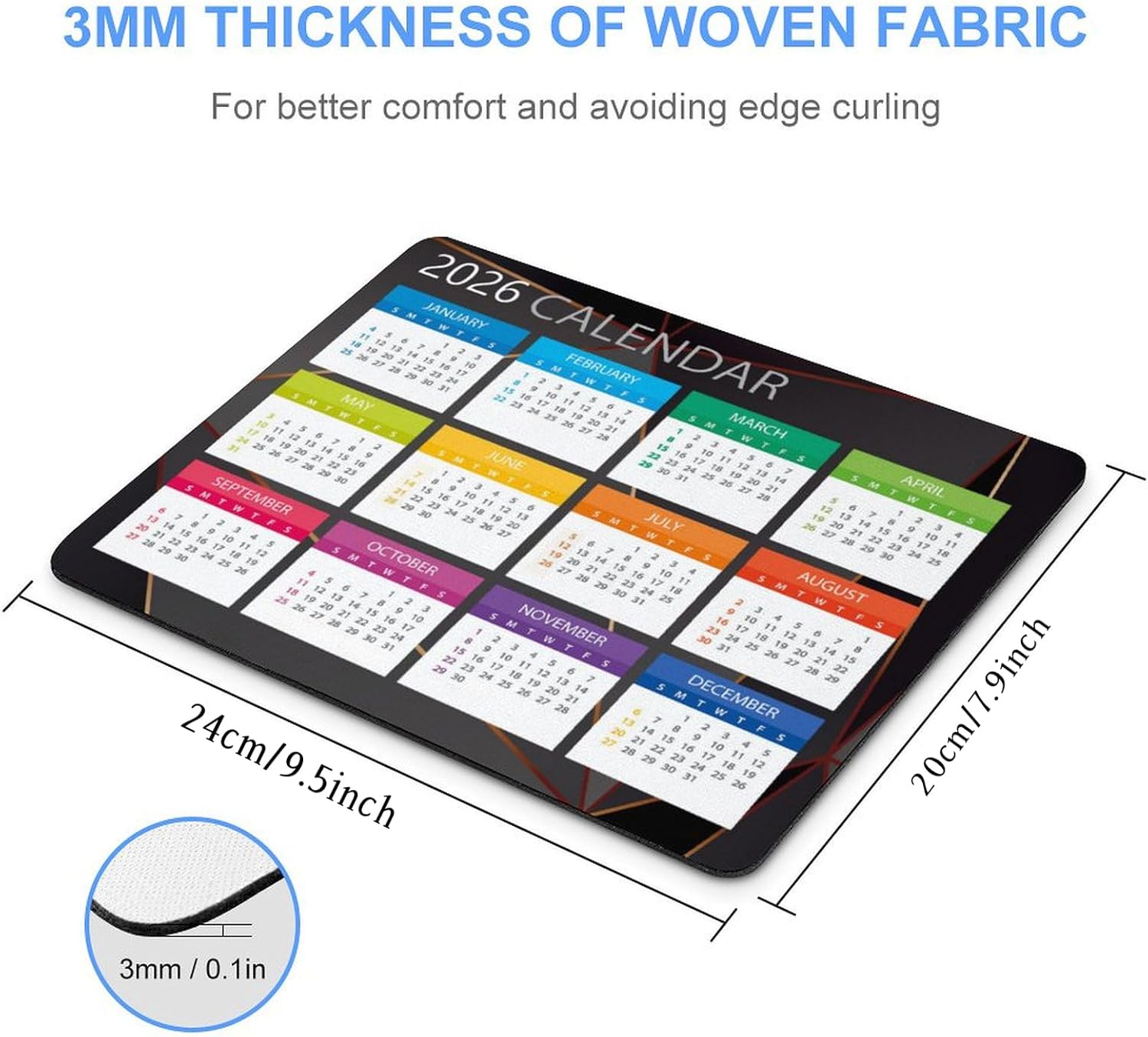 Mouse Pad 2026 Calendar,Computer Mouse Pads Calendars Non-Slip Rubber Desk Mat Mousepad Gaming Office Keyboard Mat (9.45x7.87 in) (Multi2)