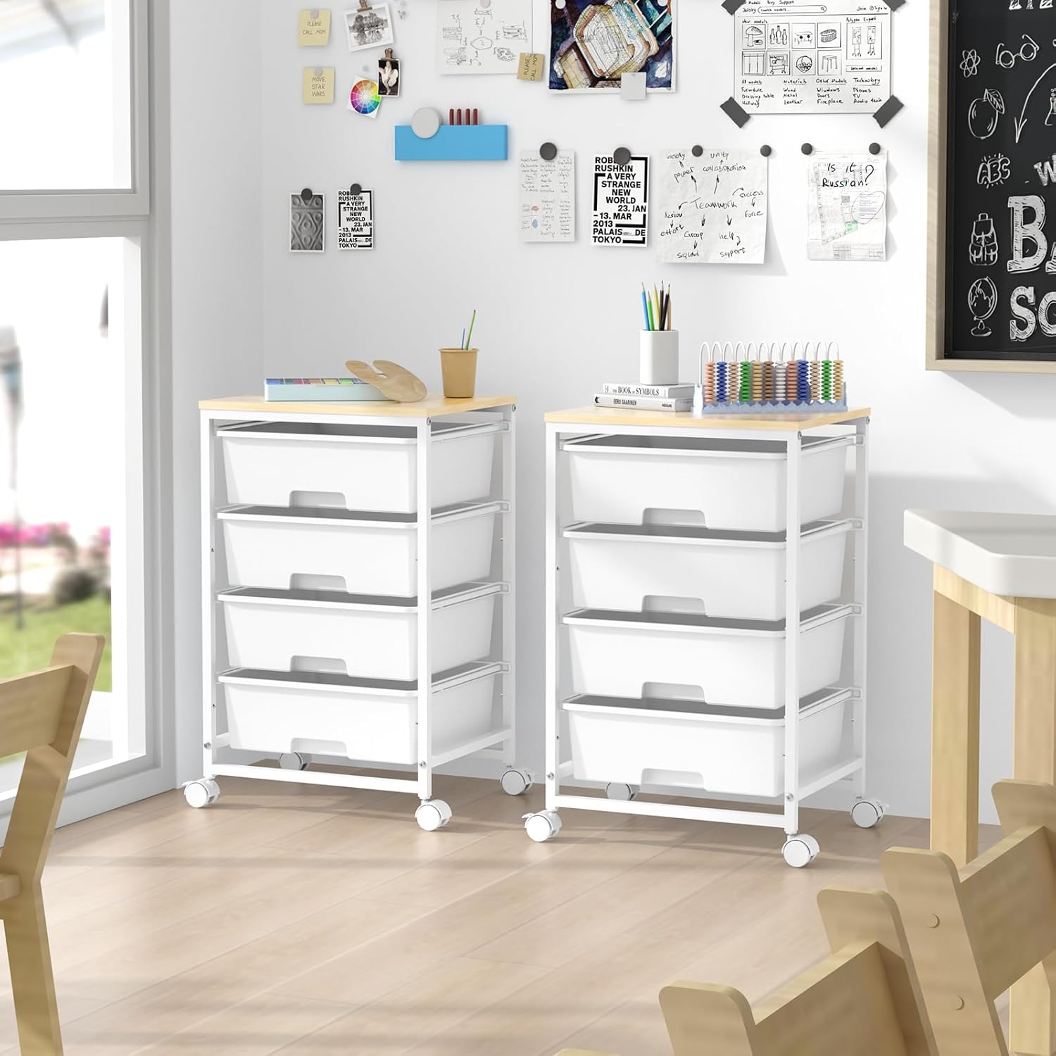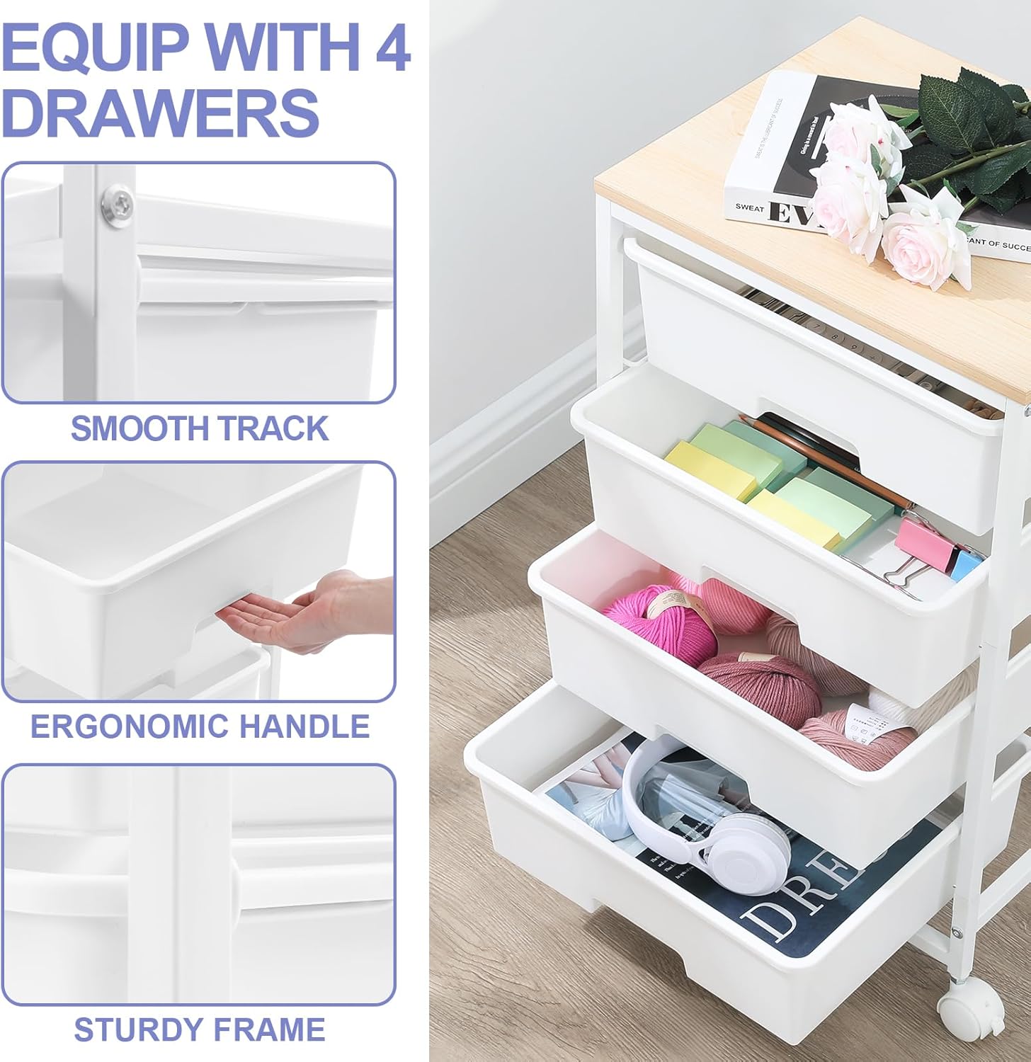 - 4 DRAWERS LARGE STORAGE CAPACITY: Rolling storage cart includes 4 big drawers which provide ample space for you to store stuff by different categories. Moreover,you can organize these items by color,stereotype,and size to keep them tidy and clean. Slide-out drawer design,with smooth slide track and ergonomic handles,easy to open or close.
