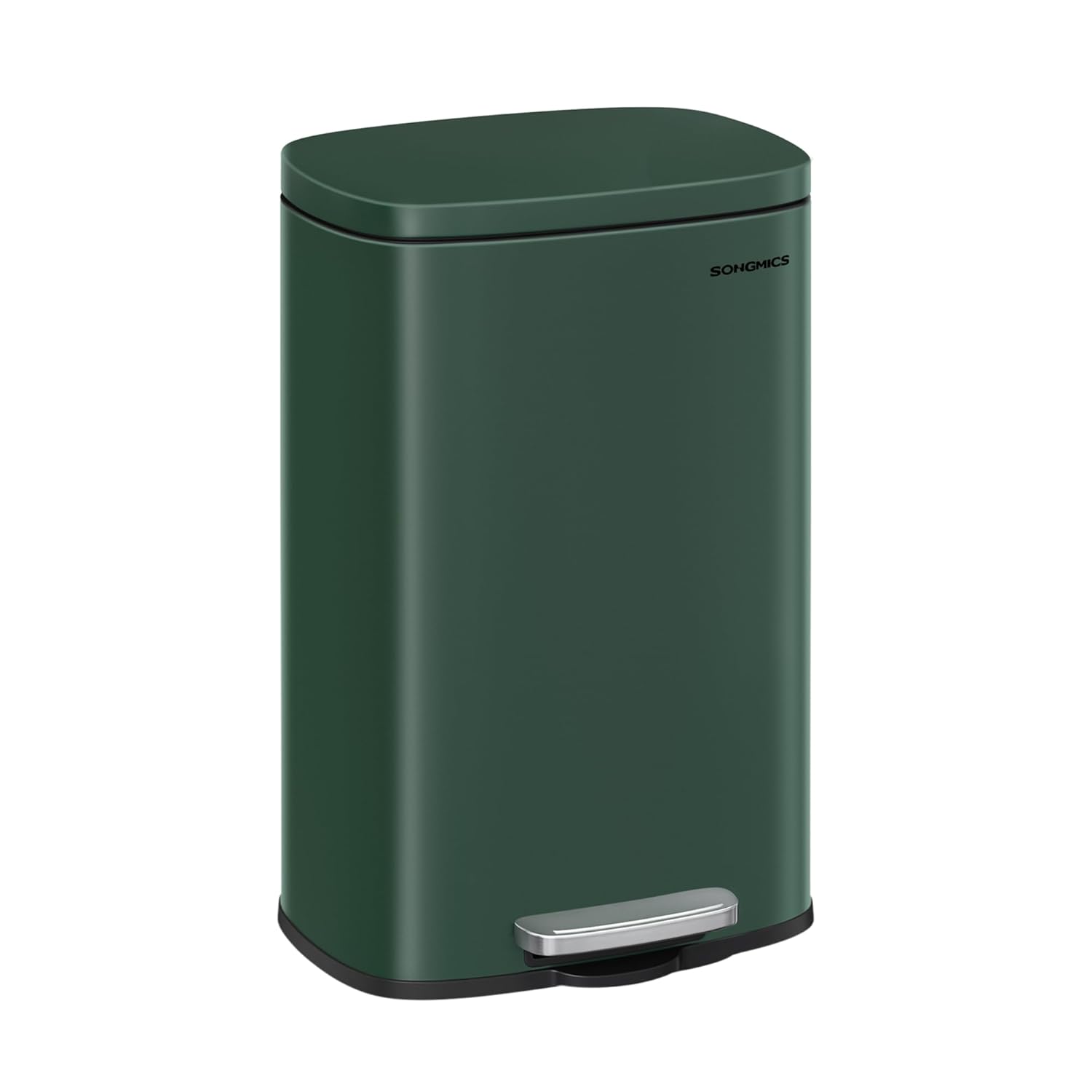 SONGMICS 13 Gallon (50 L) Trash Can, Stainless Steel Kitchen Garbage Can, Recycling or Waste Bin, Soft Close, Step-On Pedal, Removable Inner Bucket, Retro Green ULTB050C01