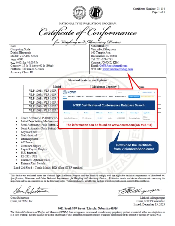 VisionTechShop VLP-100B Label Printing Scale, Capacity 30/60lb Readability 0.01/0.02lb, NTEP Legal for Trade, English, Spanish Available