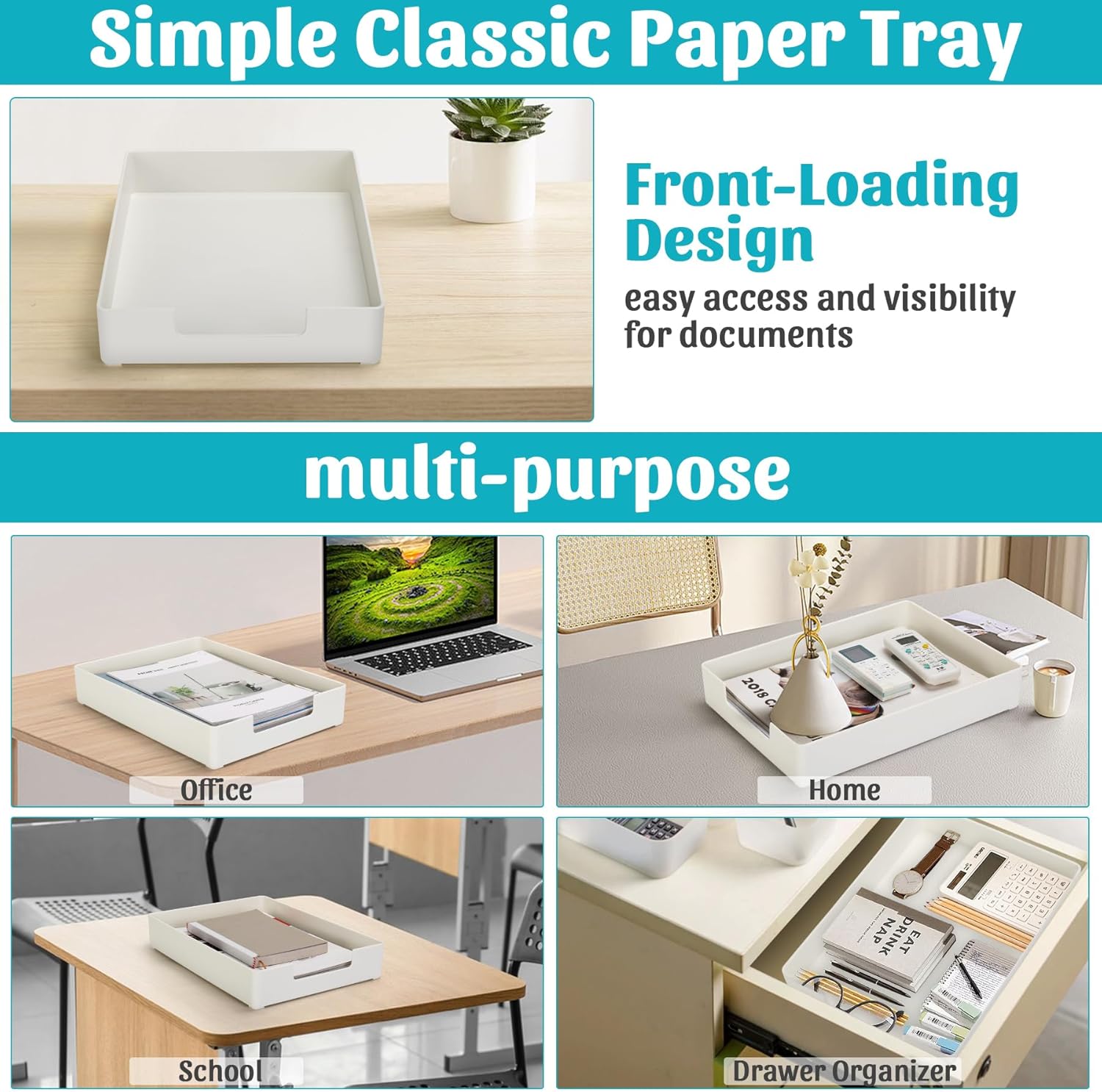 Letter-Size Tray Desk Letter Tray Paper Tray, Sturdy Heavy-Duty Plastic Printer Paper Tray, Single-Tier Stackable File Storage Organizer for Office Home (1, White)