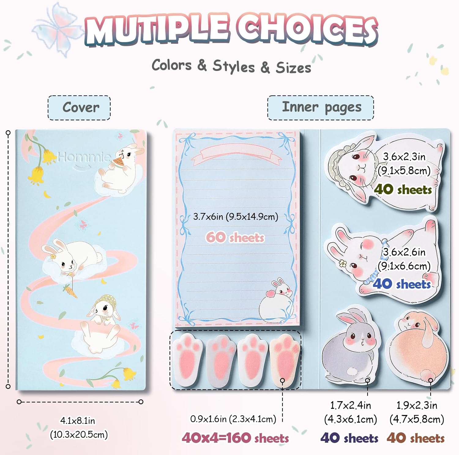 Hommie Cute Sticky Notes Set, Sticky Notes Set Planner Dividers, Easter Bunny Self-Stick Memo Pads with Animal Divider Tabs, Bundle Writing Designs for Office, School, Easter Party Supplies