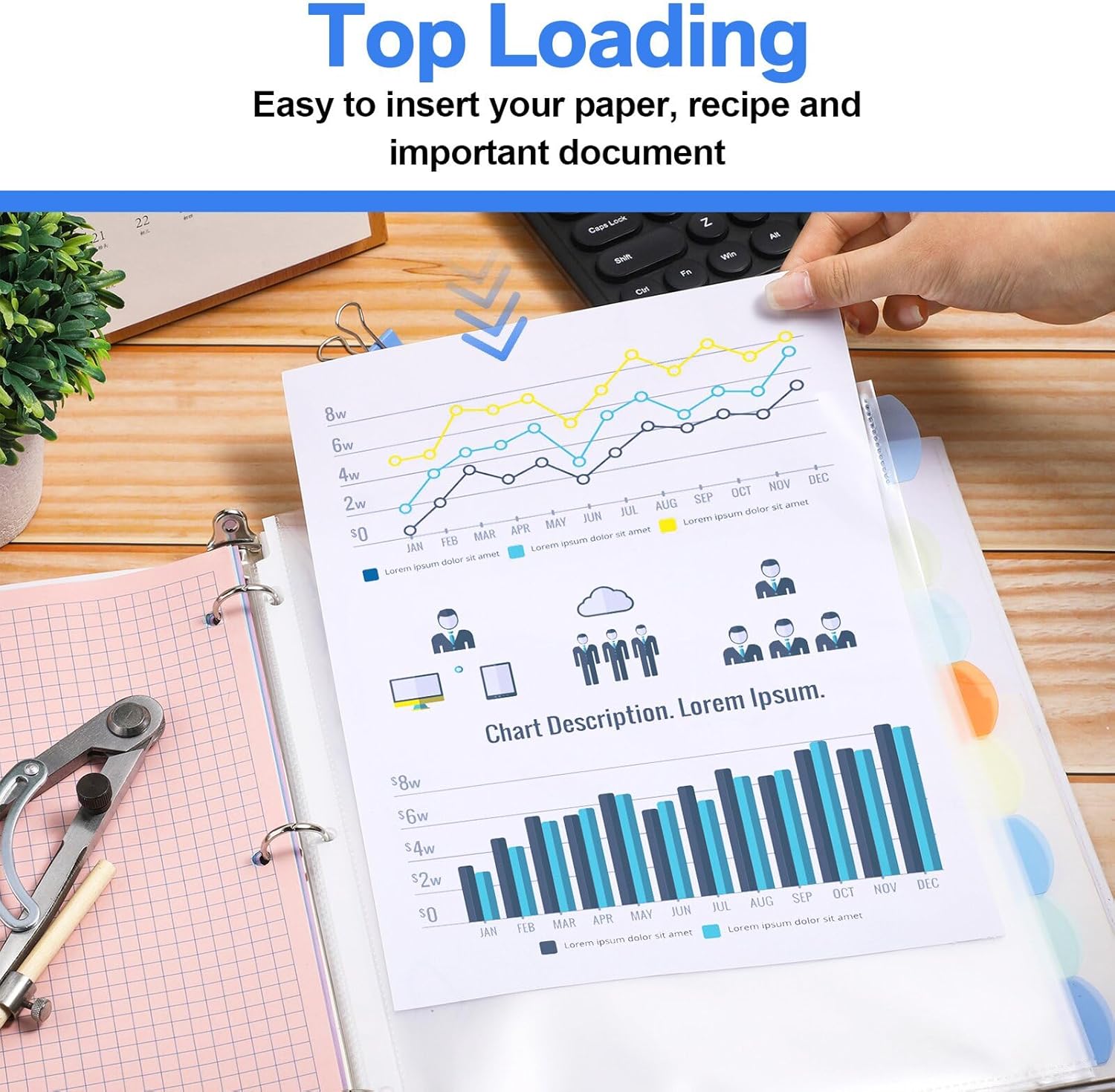 - 8 Tabs: each set of clear sheet protectors for 3 ring binder comes with 8 tabs, so you can easily organize, categorize and locate different sections within your documents easily; A transparent paper protector allows you to view documents clearly
