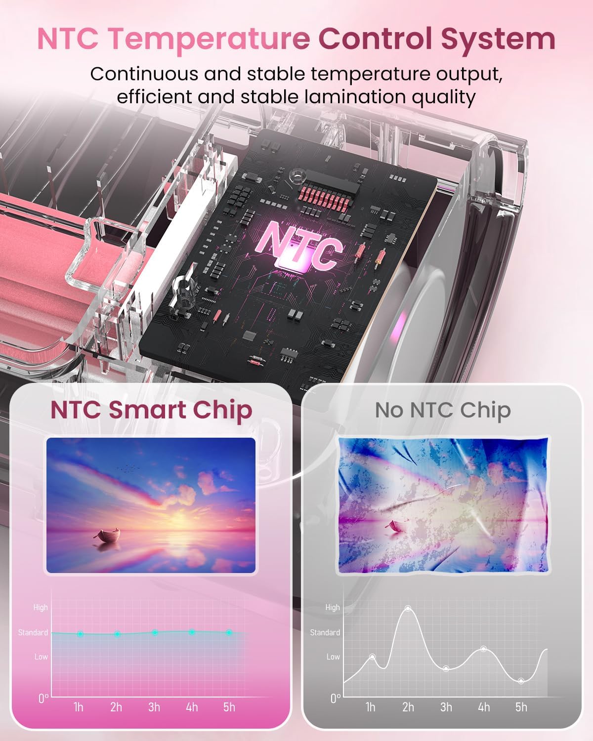 - Professional Quality, Perfect Results:The NTC smart temperature control minimizes quality variations caused by temperature fluctuations. Combined with dual rollers for even pressure, it eliminates bubbles and wrinkles, ensuring a consistently smooth finish while reducing rework and waste. Users rave about the professional quality this laminator machine 13 inch wide delivers!