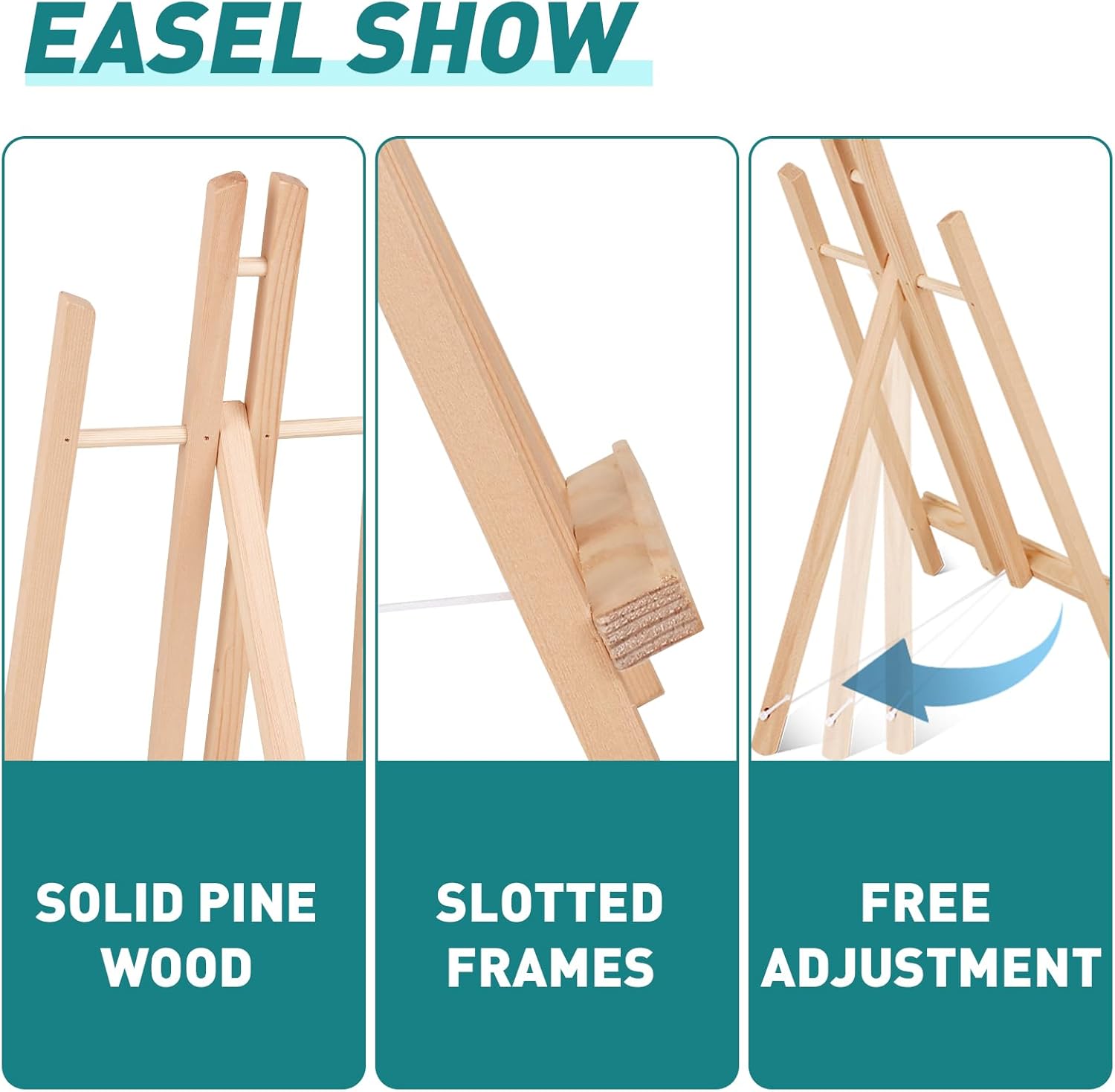 - 【Wooden Easel】: Our easel is made of solid pine wood and is sturdy. The rear tripod is fixed by a rope, keeping the easel balanced and difficult to fall. No deformation or crack. Polished surface and rounded edges will not hurt your hands.