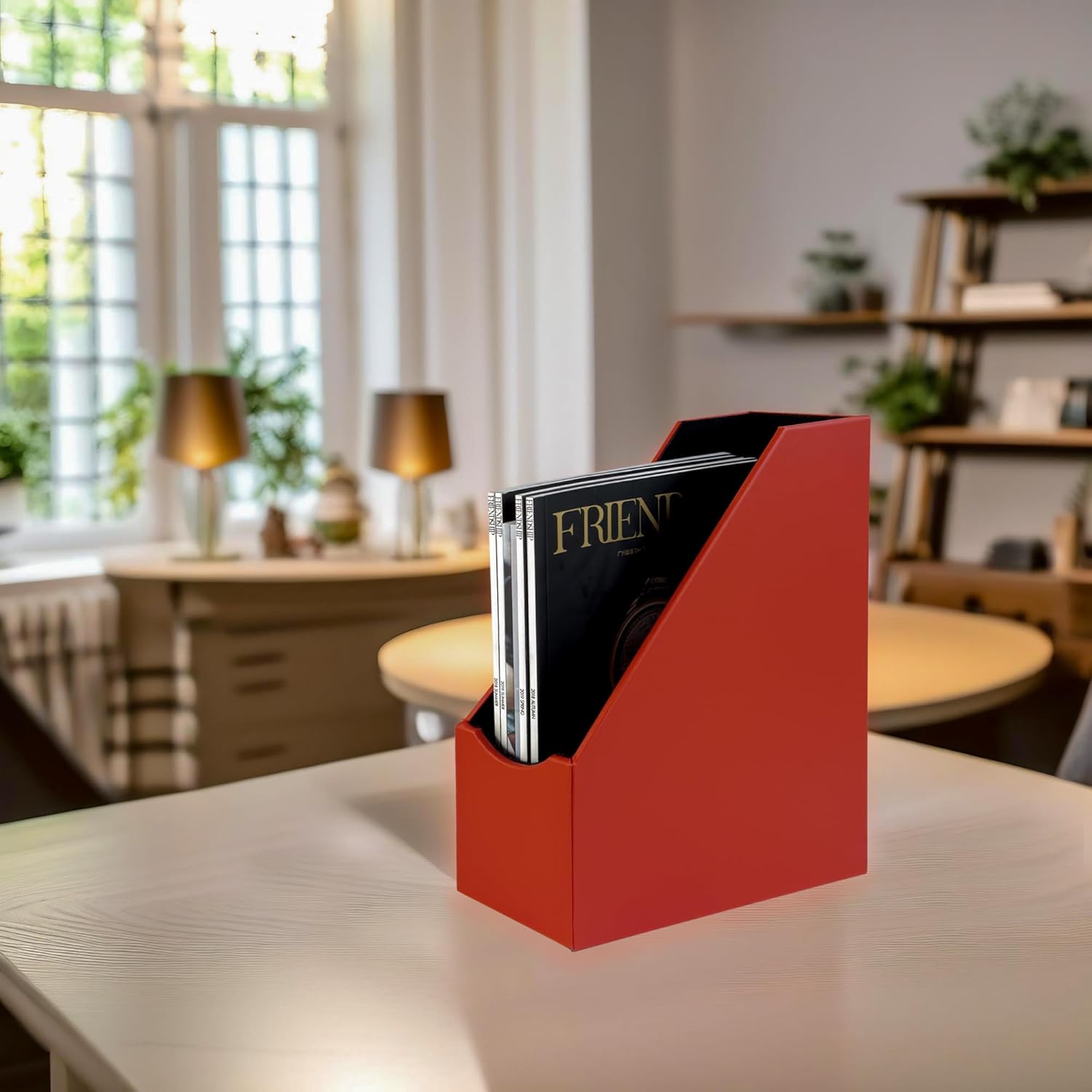 UnionBasic Magazine File Holder - Office Leatherette Desktop Document File Folder Journals Organizer Racks, Red