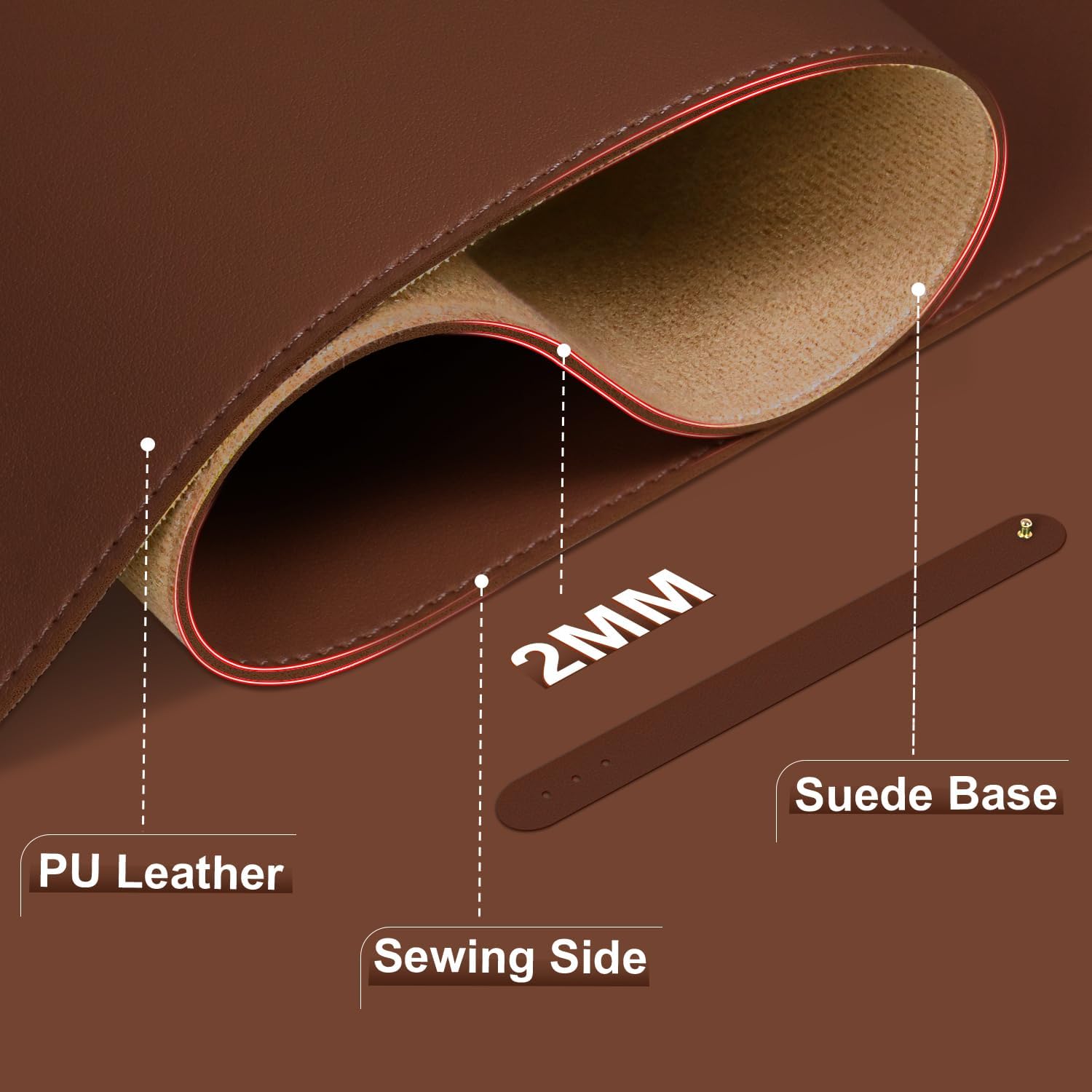- Exceptional Protection Mat: Featuring a water-resistant and durable faux leather surface, our desk pad acts as a shield against spills, stains, and other potential damages. Rest assured that your glass or wooden desktop surface will be preserved and well-protected from spilled water, drinks. Sewn sides prevent peeling.