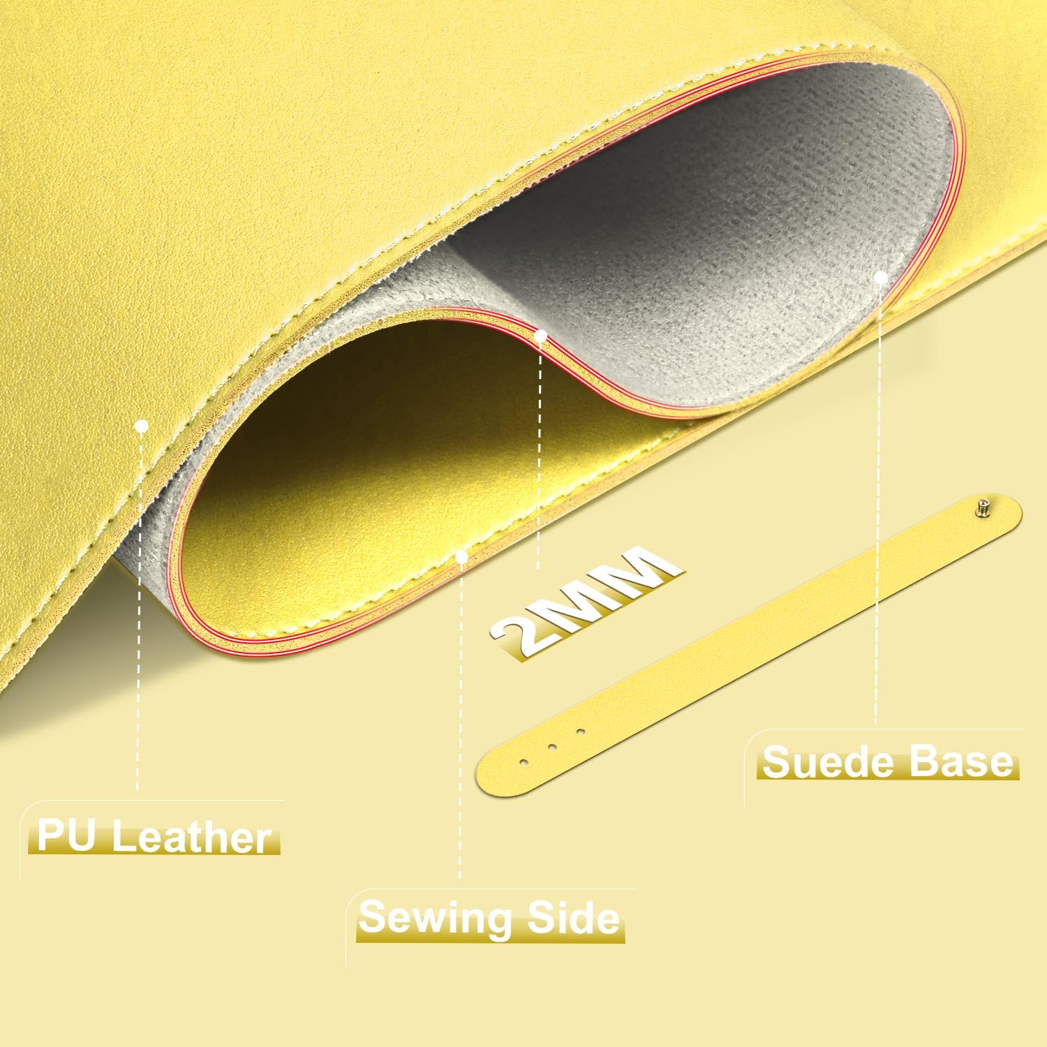 Desk Pad Protector, Leather & Suede Desk Mat, Non-Slip Desk Pad Mat, Large Mouse Pad, Waterproof Desk Blotter Mat, Desk Cover for Office, Home (Yellow, 23.6" x 13.7")