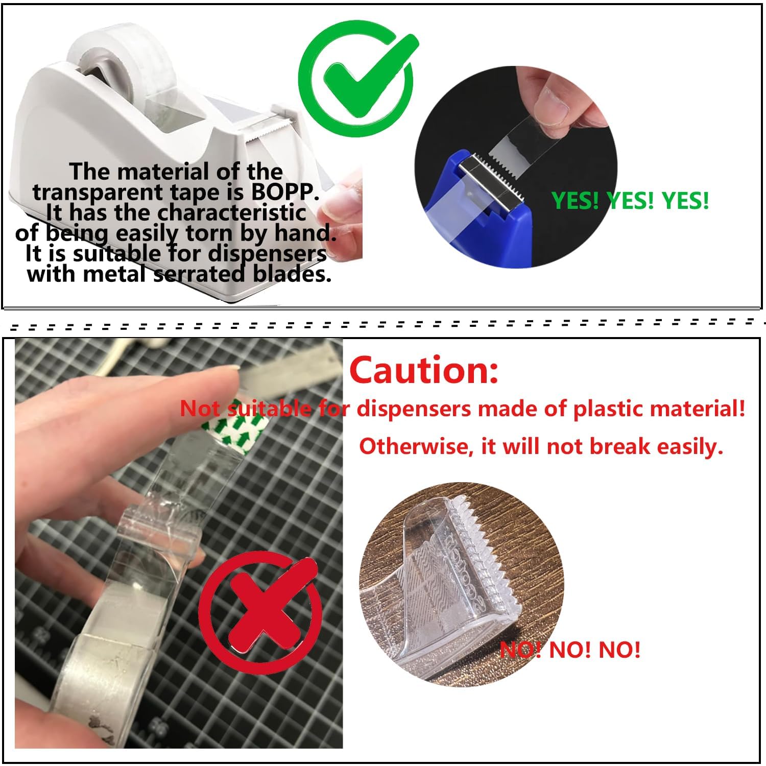 - Tape Refill: The inner diameter of the invisible tape is 1 inch/ 2.5cm,Each Roll 3/4 x 1000 Inches, Color: clear,The material BOPP is not suitable for the dispenser with plastic serrations. Otherwise, the tape cannot be cut well. It is recommended to use a metal serrated cutting head.