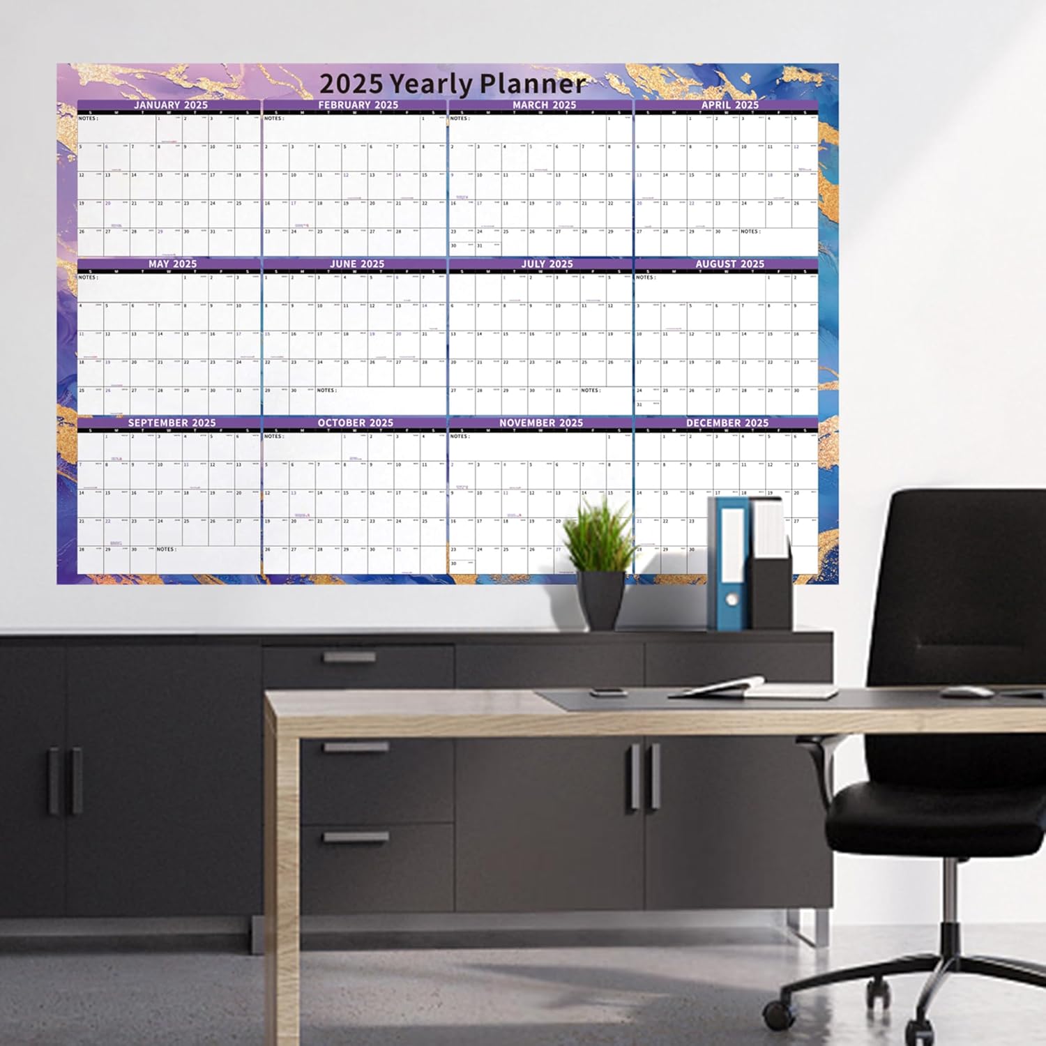 - ✨ 32" x 48" Yearly Calendar: Double-sided marble design calendar that is easy to hang using push pins, and is also easy to clean. Each date box measures 1.65'' x 1.77'' inches, providing ample space to jot down your daily tasks and even track your activities throughout the entire year.