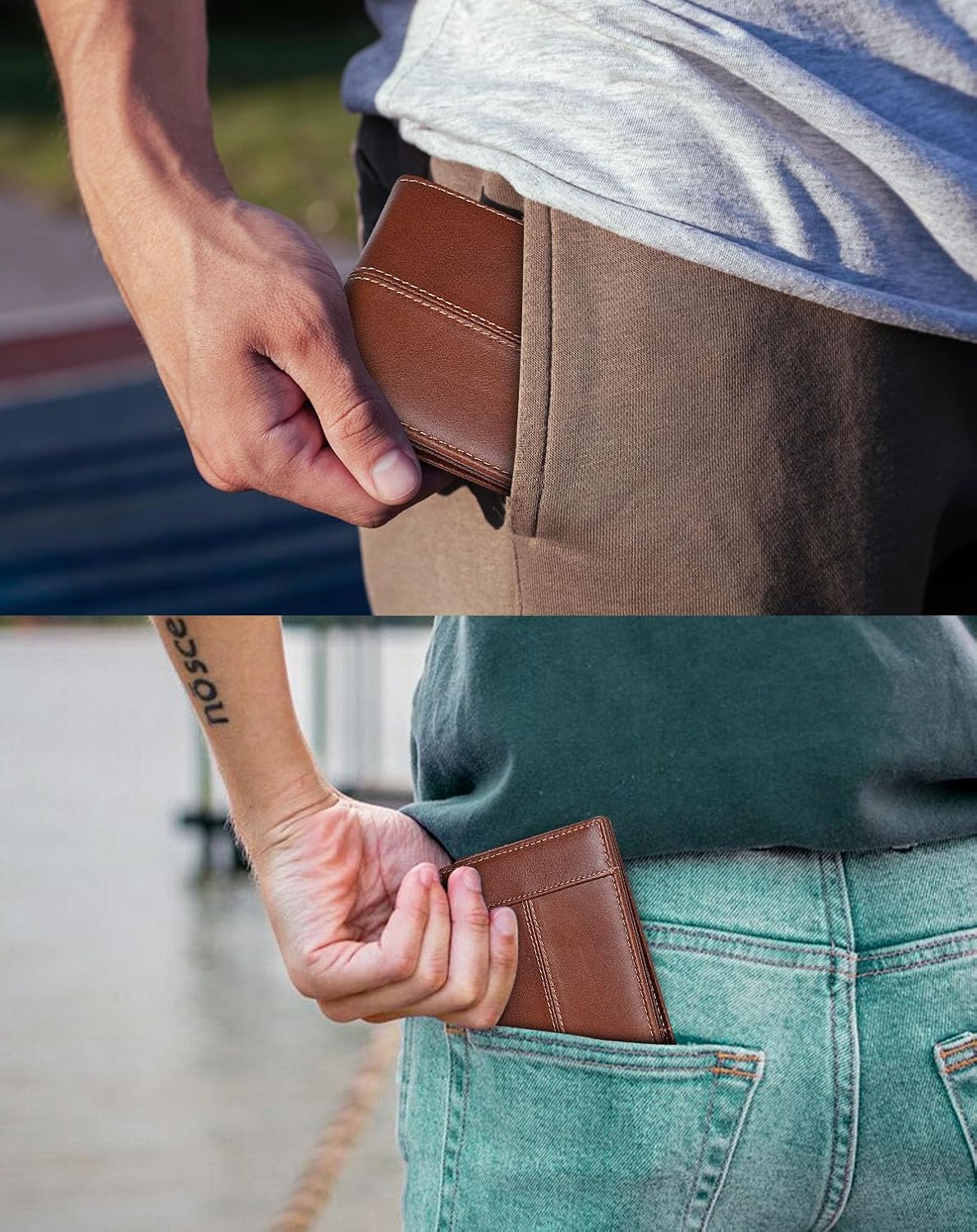 - Genuine Leather: Crafted from premium cowhide leather, our wallet is soft and smooth to touch. The exquisite stitching process and design give it a sophisticated look. Whether you're holding it in your hands or slipping it into your pocket, it feels comfortable natural without any bulk or discomfort