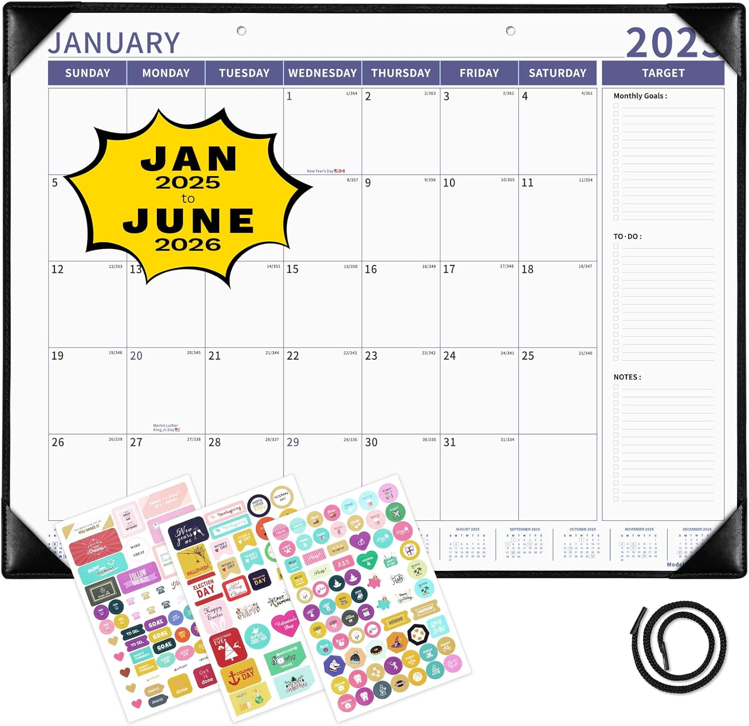 Ospelelf Large Desk Calendar 2025-2026 with Plastic Cover, 18 Months Planner Pad from January 2025 to June 2026, 22" x 17" PU Leather Wall Calendar for Home or Office, Black