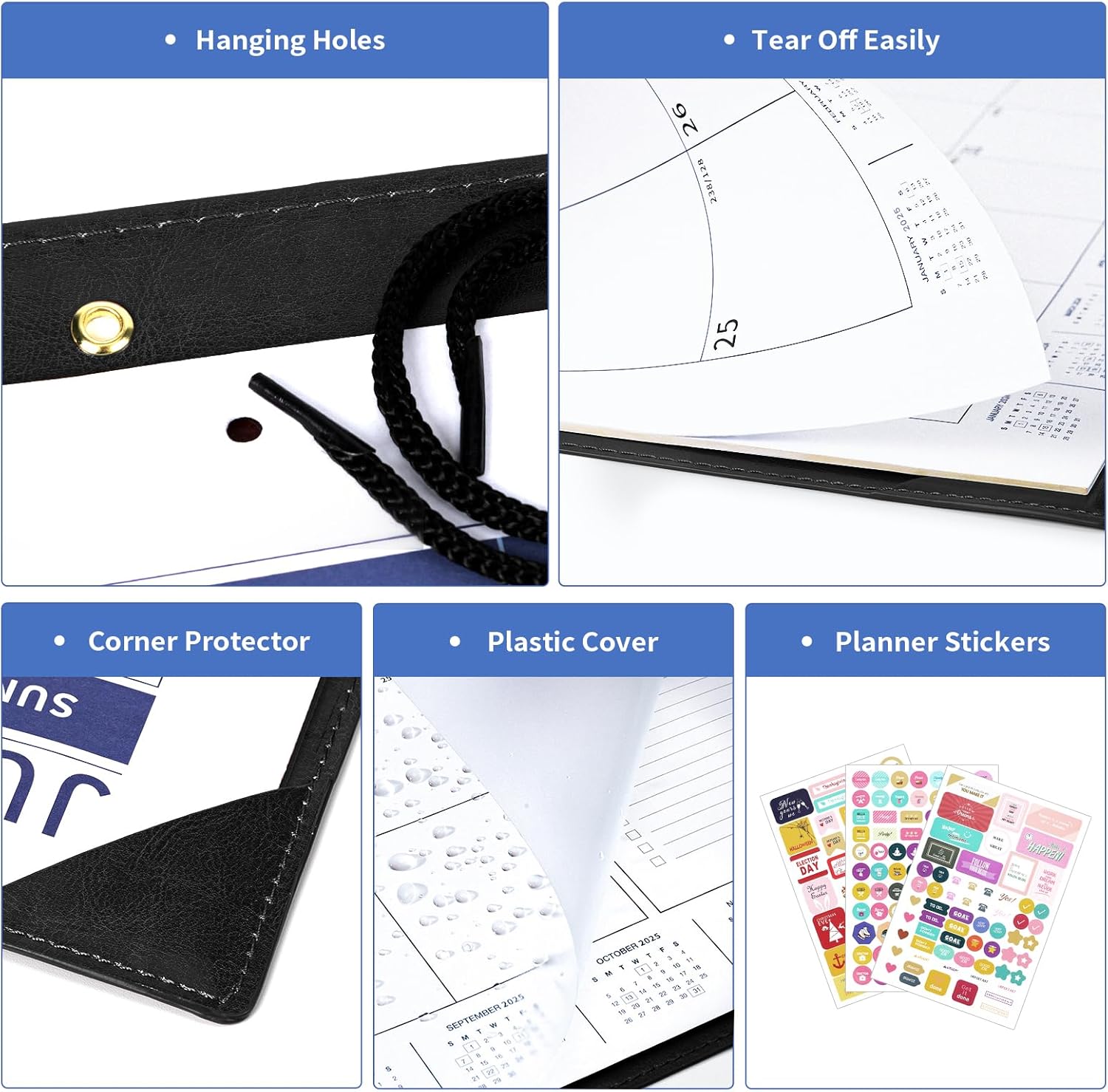 - Two Ways to Use It: The calendar can be placed on the desktop or hung on the wall by using our matching detachable string. Two hanging holes enable it to also be used as a wall calendar. In addition, the matching faux leather pad can be used as a desk mat or mouse pad.