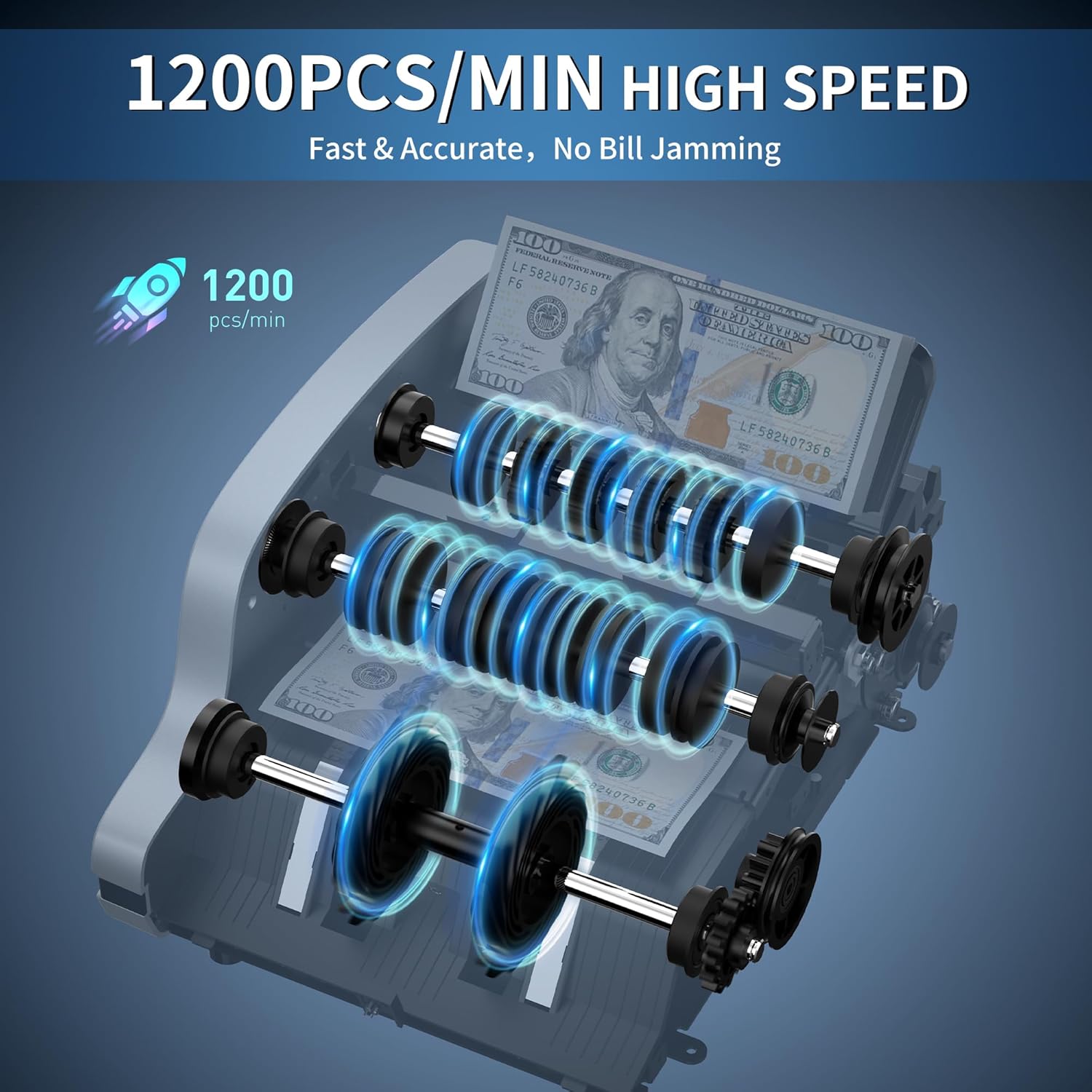 - Efficient and Smooth - The dispenser uses the latest roller technology to quickly count not only new banknotes, but also old, creased banknotes. The efficient motor counts up to 1200 notes per minute without jams, which saves you a lot of time and ensures that you can quickly complete your daily financial counting tasks.