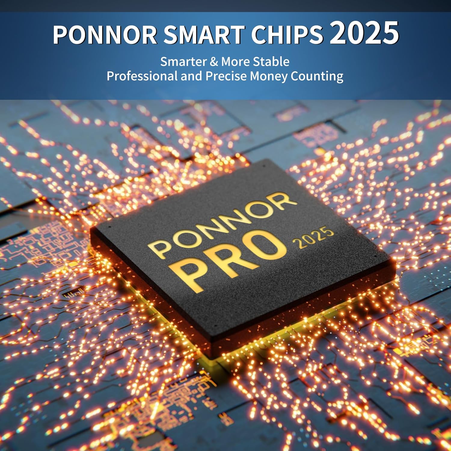 PONNOR Money Counter Machine with Value Count, UV/MG/IR/MT/DD Counterfeit Bill Detection, Dollar Euro Cash Counter with Count/Add/Batch/Auto Modes, External LCD Display