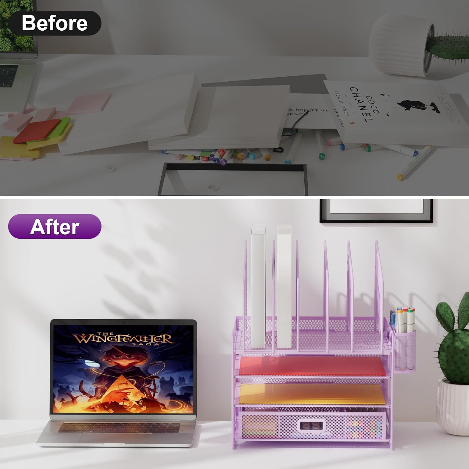 - 【Space Saving】Outfit your space with the Hanging Pencil Holder (Built-in Hooks) and top vertical file folder holder, which offers everything you need and make the most of your vertical and horizontal space to keep your desk neat so you can stay on task and do great work