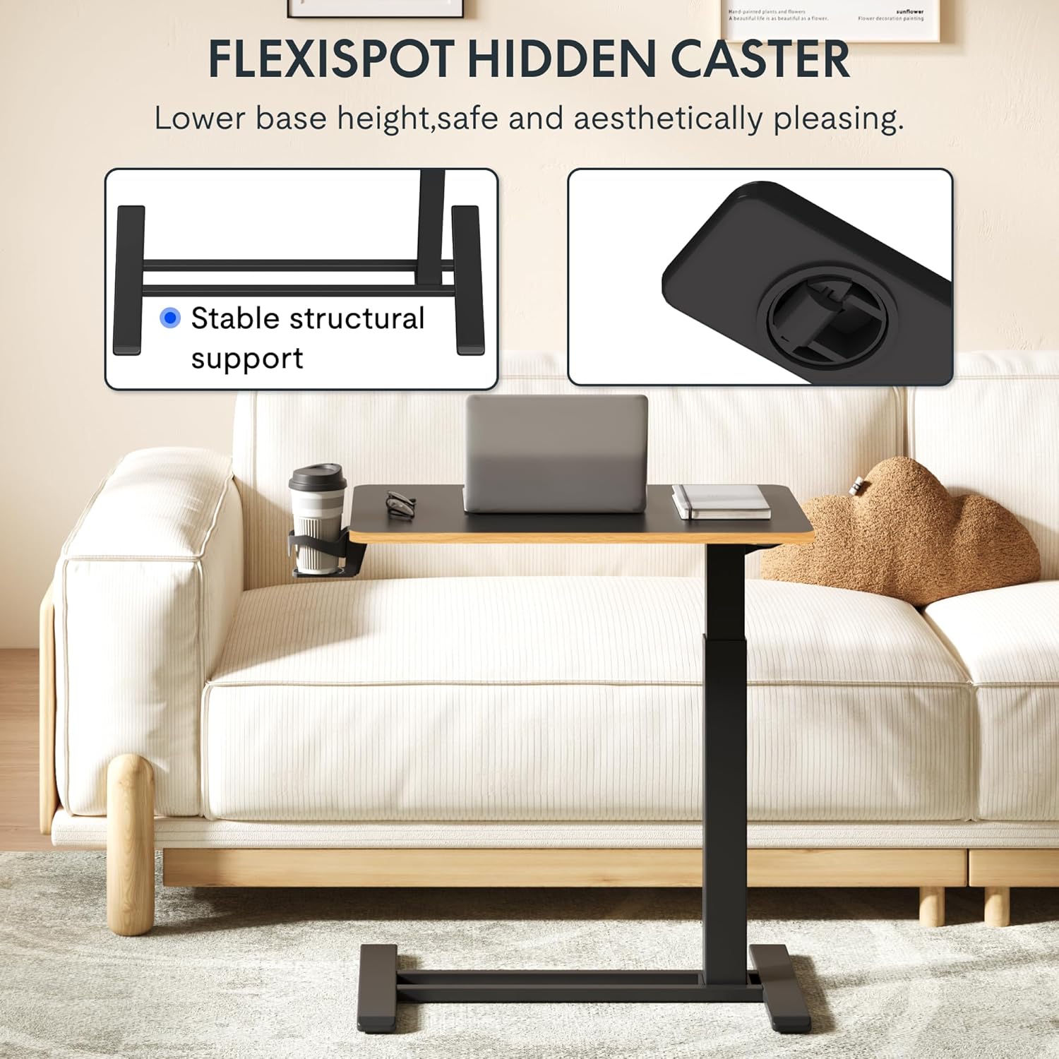 - Easy to move around & space-saving: Flexispot standing desk portable desk is equipped with 4 hidden casters to easily maneuver it anywhere you like. It’s an ideal portable workstation for any home or office! A low-profile base with smooth rolling wheels eases and tuck beneath furniture minimum 1.2" high to save space.