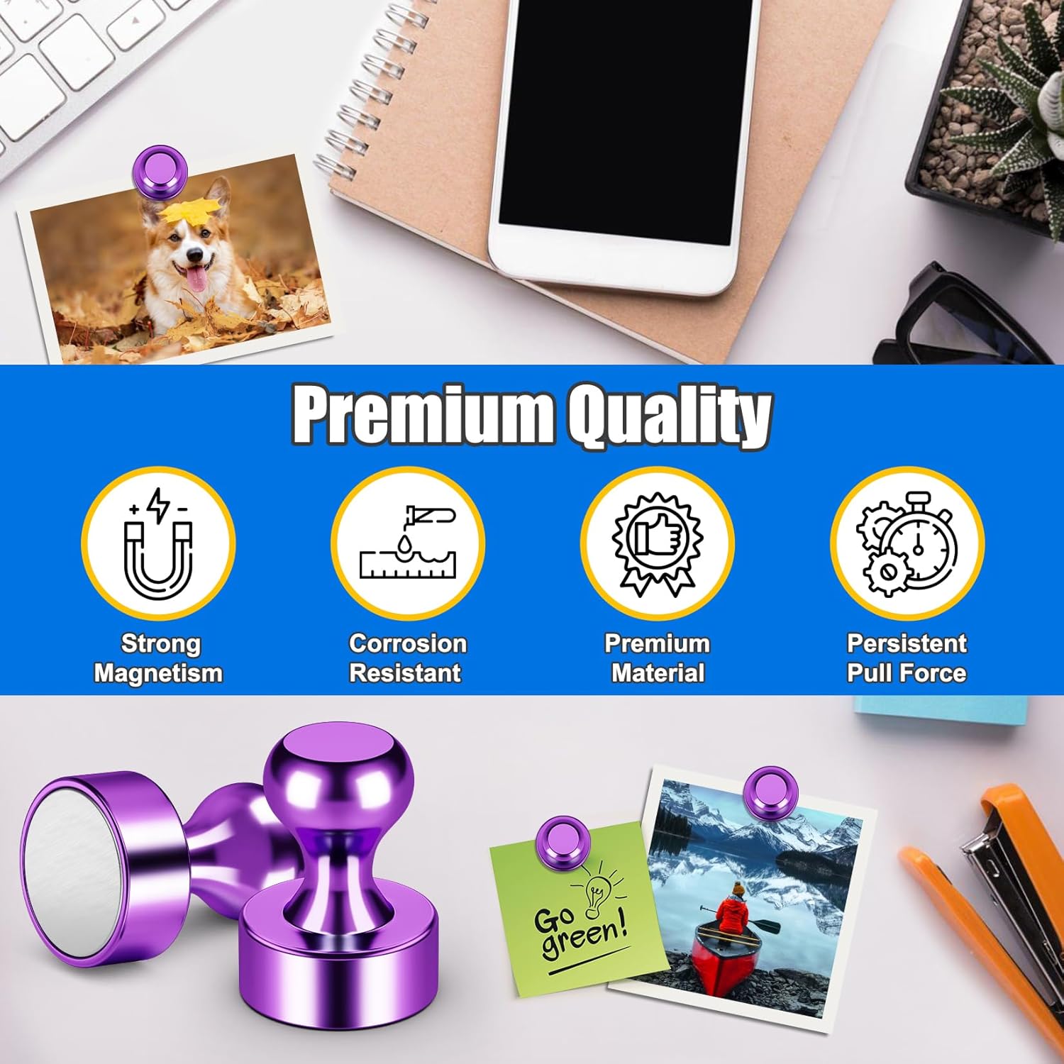 Strong Whiteboard Magnets, Purple Metal Fridge Magnets for Crafts, Cute Magnetic Push Pins for Office, Kitchen, Classroom, Refrigerator, Desk, Wall, Bulletin Board Pack of 120