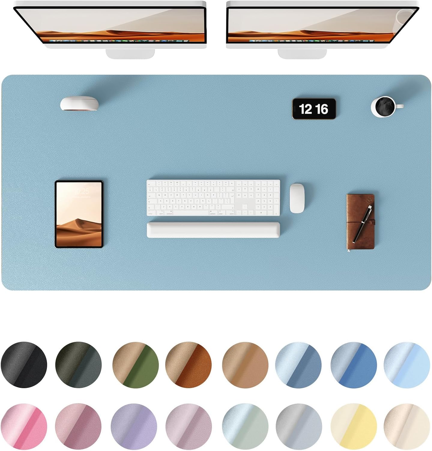 - DESK PROTECTOR: Durable PU Leather material adapted, which can protect your desk from scratches, stains, spills, heat and scuffs. Multi-color provided, change your mode by change the working atmosphere. Surface can be used as a large mouse pad, comfortable resting surface for your hands while writing, typing, and using the mouse. A must have office or study supplies.