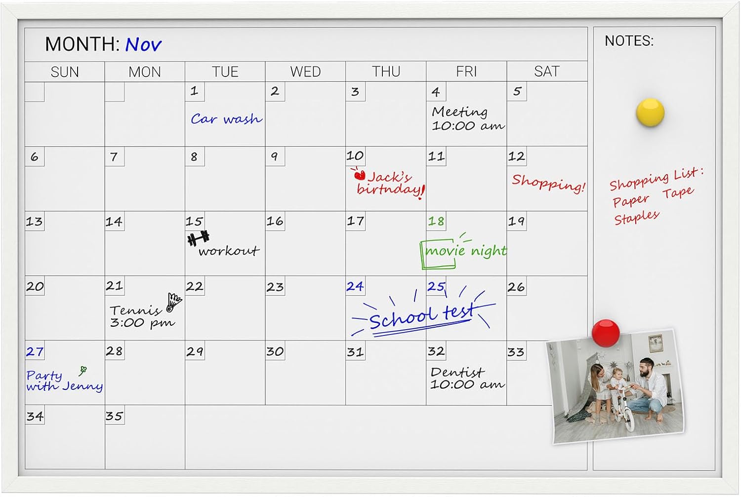 - 【Function Design】 The Dry Erase whiteboard has a calendar view, which makes it convenient and easy to track all the tasks and events of the family. There is also a note section, which is convenient for daily, weekly and monthly planning.It integrates a dry-erase calendar and a dry-erase whiteboard. It can magnetically attach Xnotes, photos, etc., and can also quickly jot down ideas and tasks, serving as a family activity center.